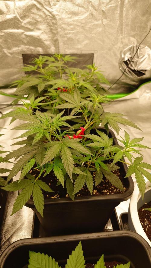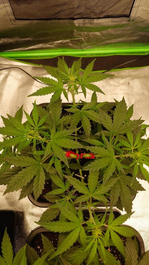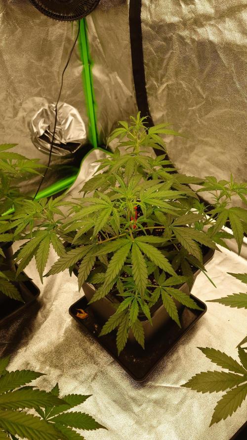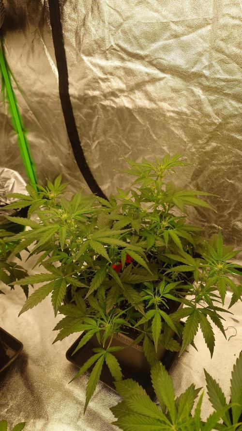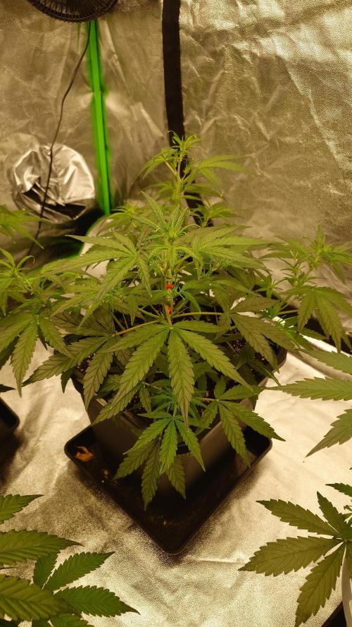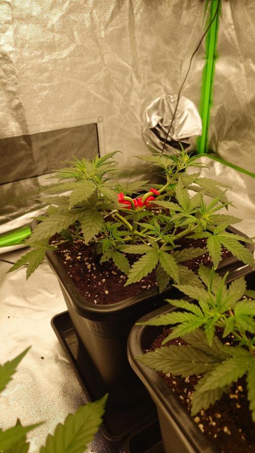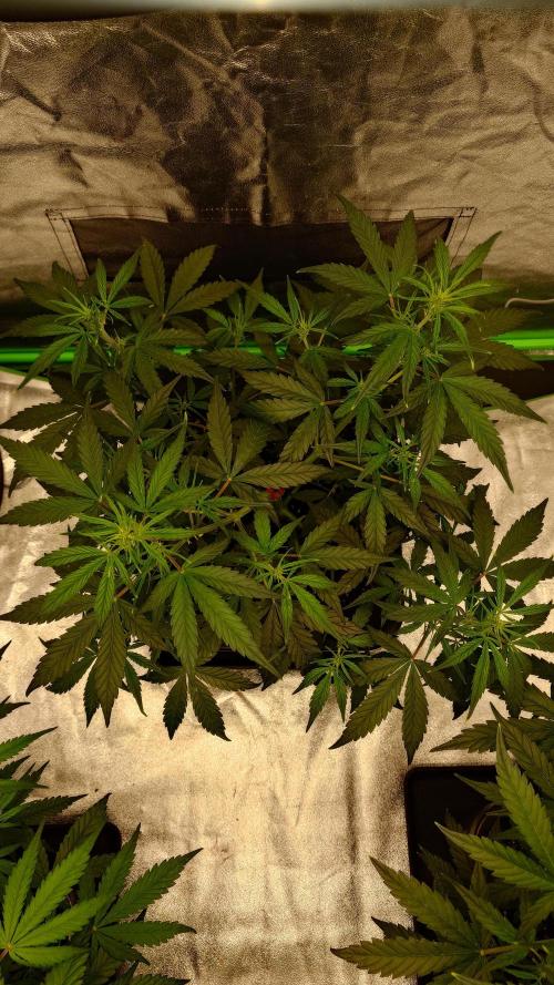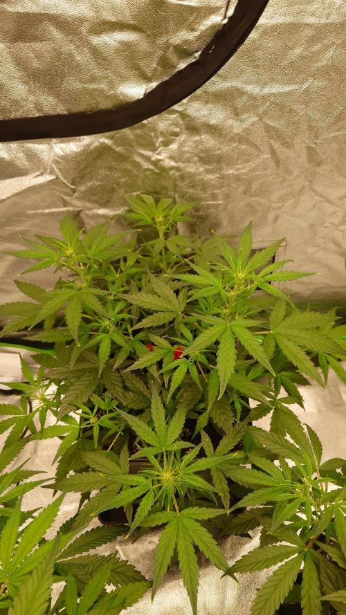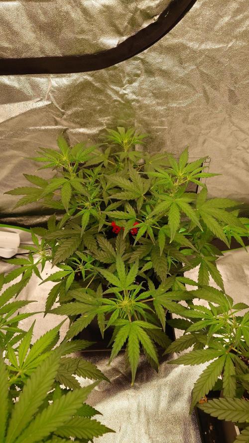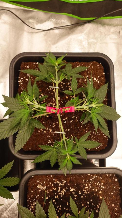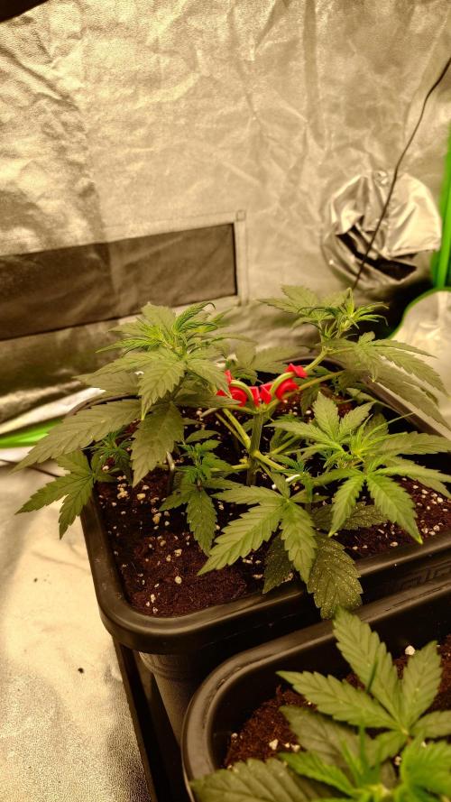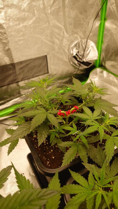 FrostedBudvarian Woche 4 und die Ladys sind offensichtlich mitten in der Vorblüte 😍 Sie sind zwar leider ein paar cm kleiner als die erste Sour Jealousy aber das kann im Stretch ja noch werden. Die Seitentriebe wurden nach außen trainiert aber sonst wurde diese Woche nichts daran gemacht. Diese Woche werden wir anfangen mit dem Düngen. Die Pflanzen machen aber einen super und vor allem gesunden Eindruck.