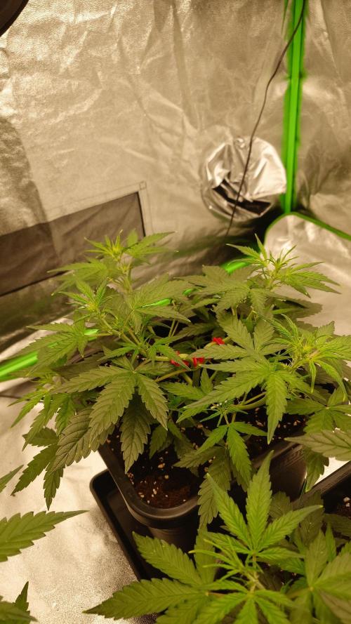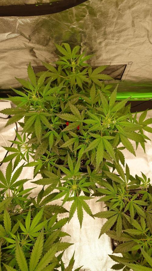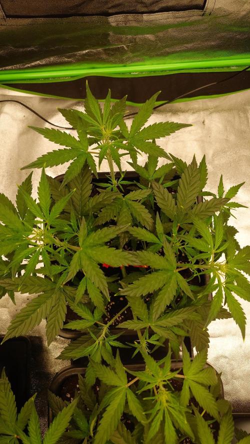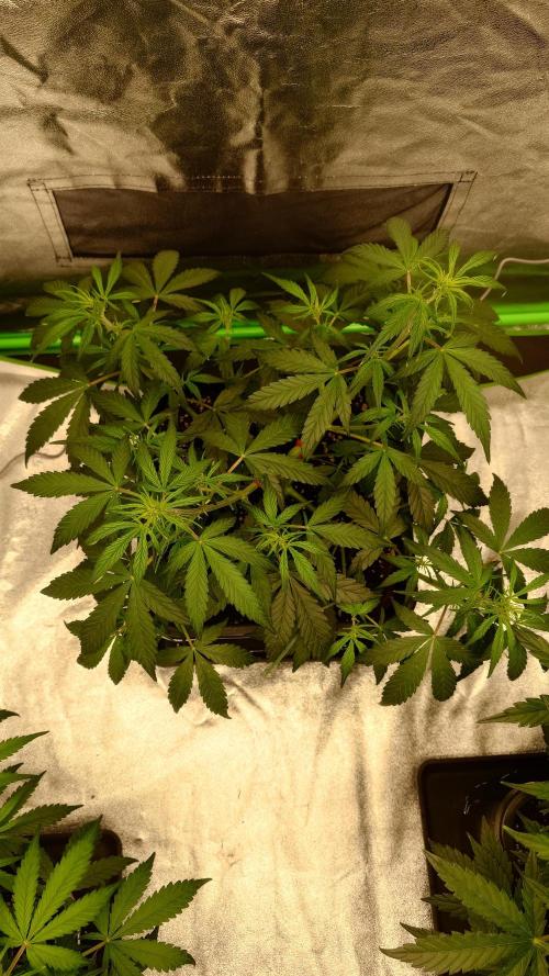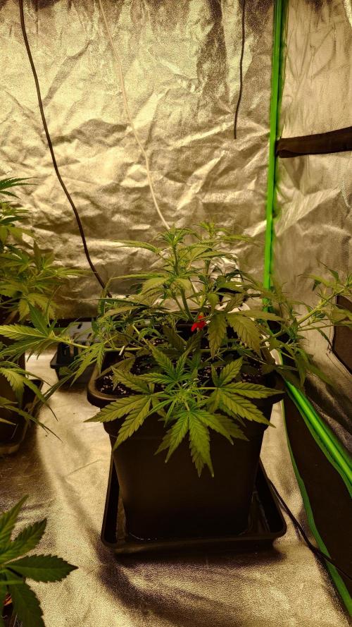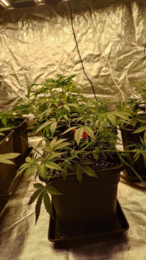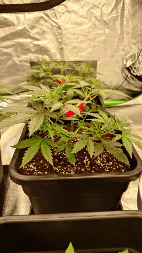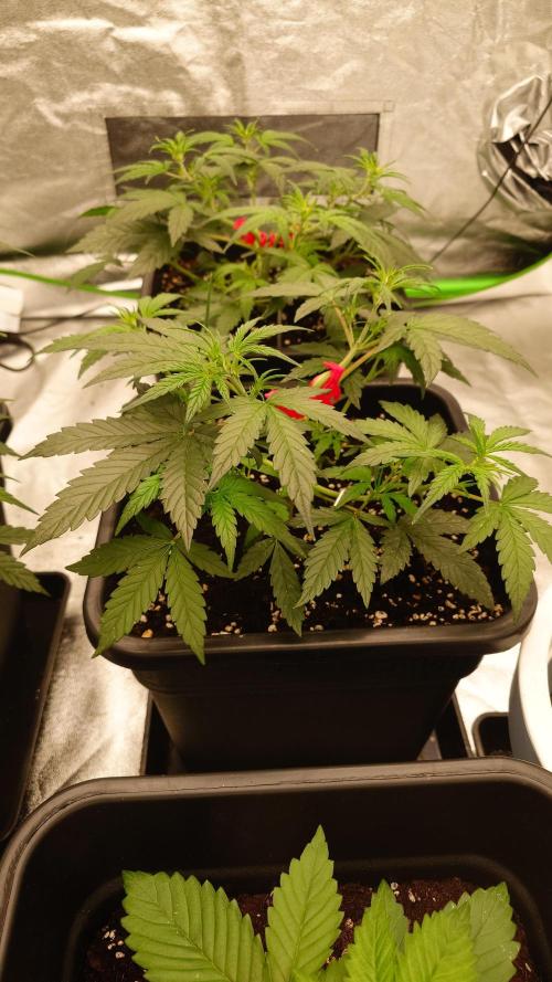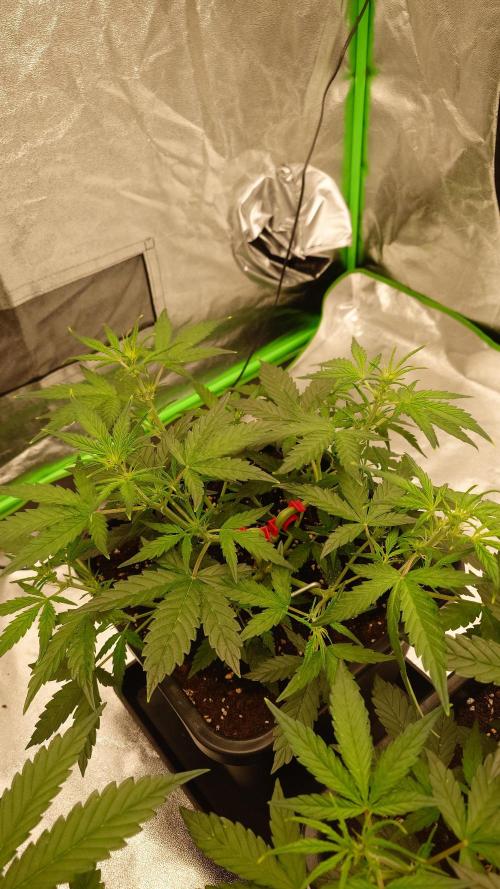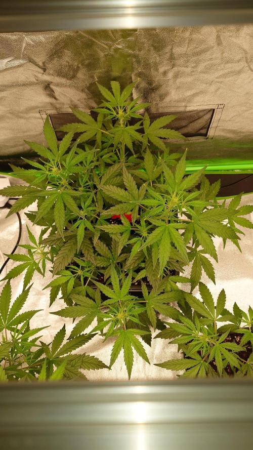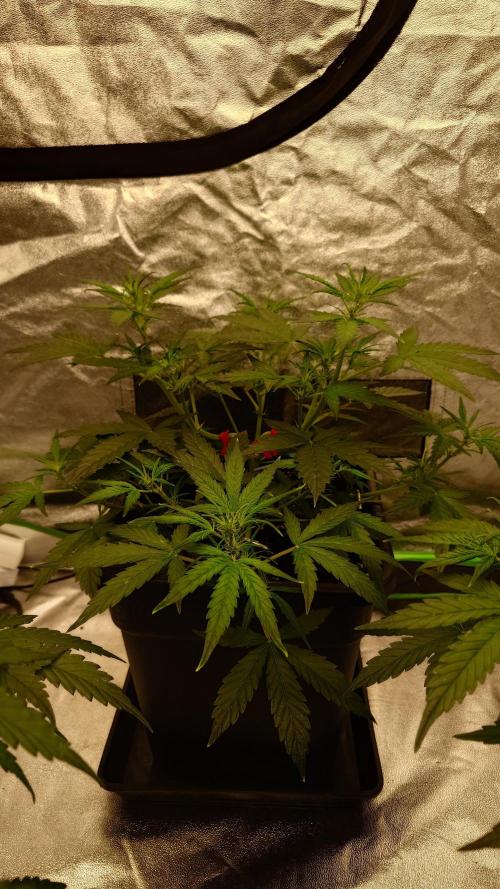 FrostedBudvarian Woche 4 und die Ladys sind offensichtlich mitten in der Vorblüte 😍 Sie sind zwar leider ein paar cm kleiner als die erste Sour Jealousy aber das kann im Stretch ja noch werden. Die Seitentriebe wurden nach außen trainiert aber sonst wurde diese Woche nichts daran gemacht. Diese Woche werden wir anfangen mit dem Düngen. Die Pflanzen machen aber einen super und vor allem gesunden Eindruck.