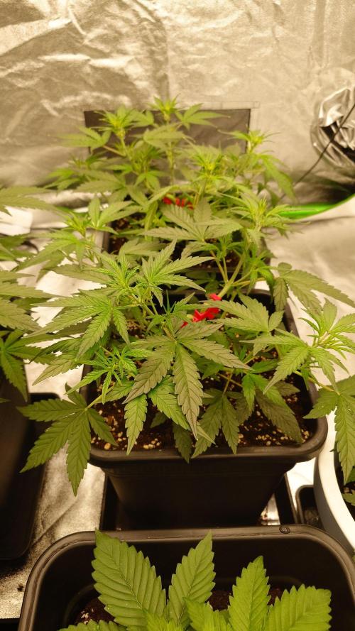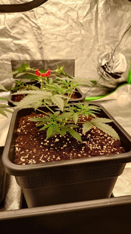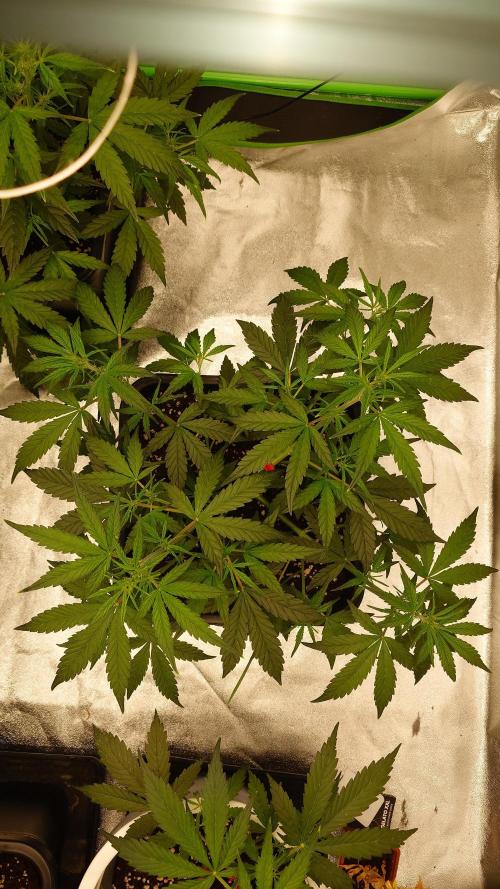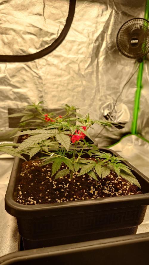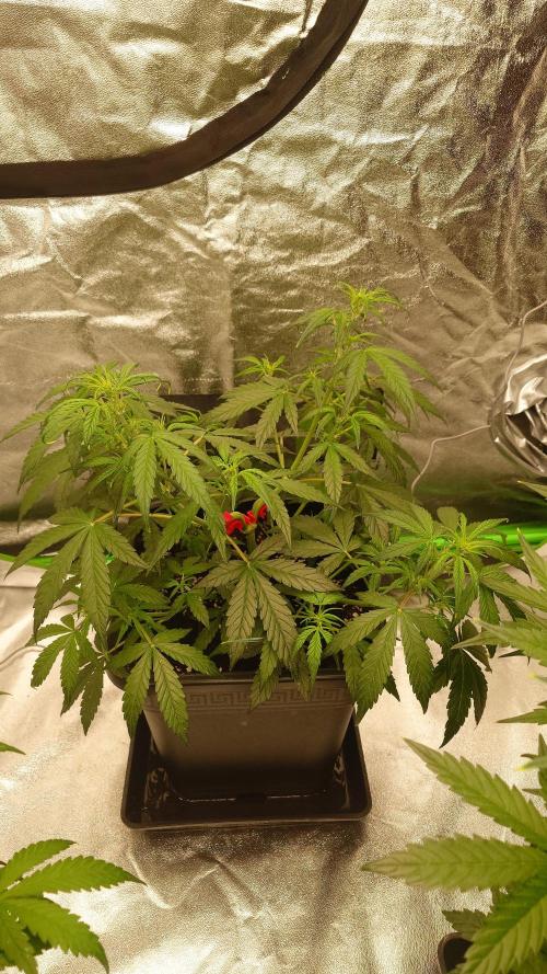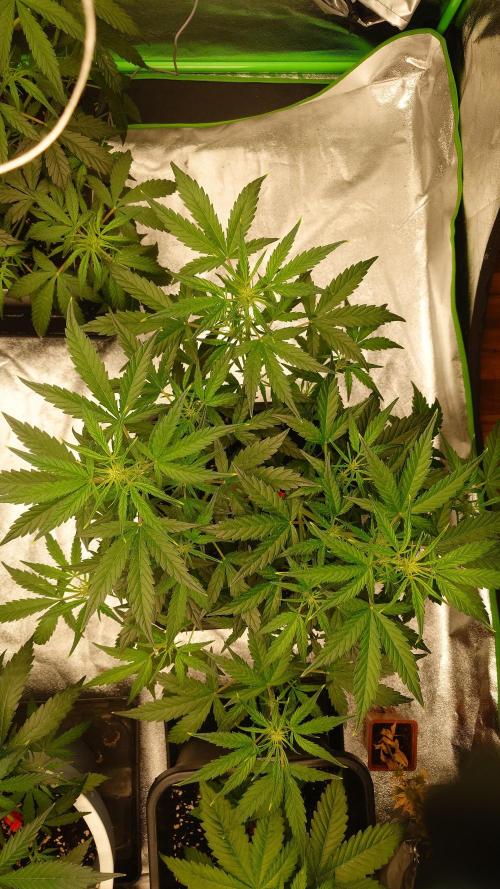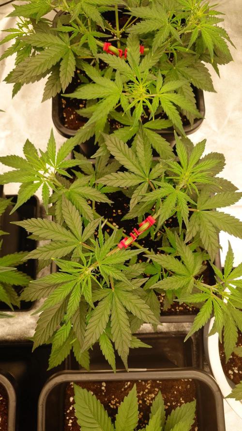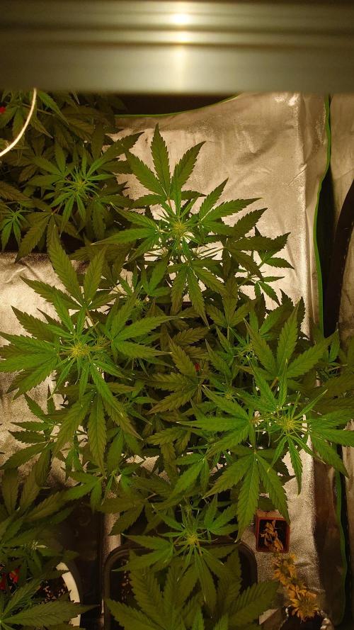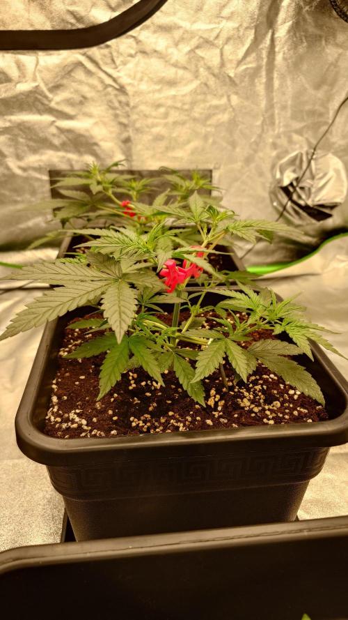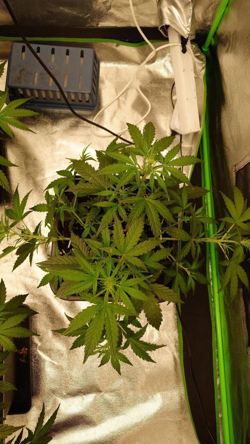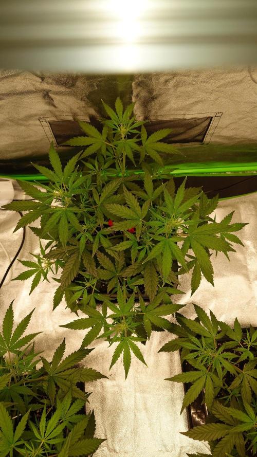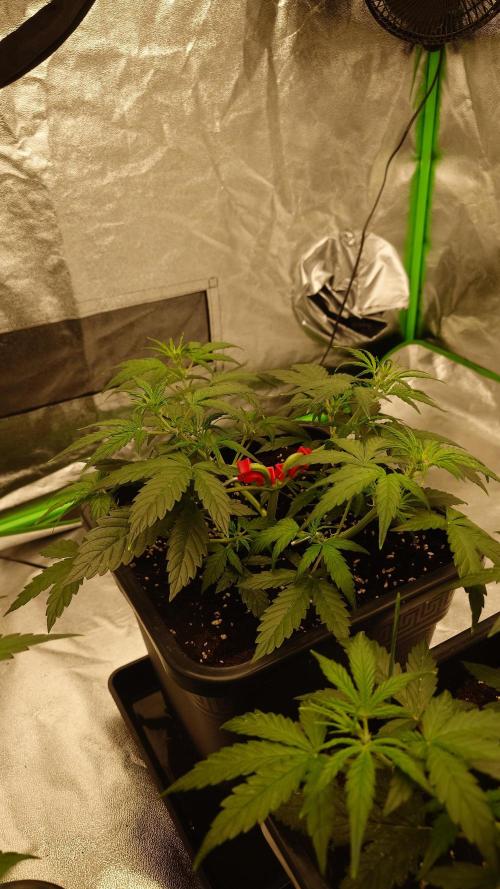 FrostedBudvarian Woche 4 und die Ladys sind offensichtlich mitten in der Vorblüte 😍 Sie sind zwar leider ein paar cm kleiner als die erste Sour Jealousy aber das kann im Stretch ja noch werden. Die Seitentriebe wurden nach außen trainiert aber sonst wurde diese Woche nichts daran gemacht. Diese Woche werden wir anfangen mit dem Düngen. Die Pflanzen machen aber einen super und vor allem gesunden Eindruck.