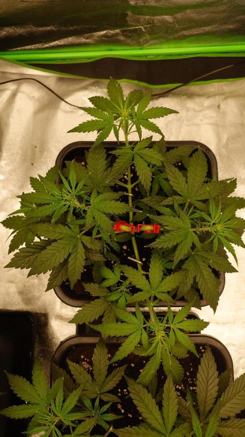 FrostedBudvarian 2te Wachstumswoche verlief weiterhin top. Ich hab leider einen Thripse Befall den ich gerade versuche in den Griff zu bekommen. Ansonsten wachsen sie super und weißen keine Probleme auf. Nächste Woche werde ich dann die Größere schonmal toppen. Eine wird getoppt und mit LST trainiert und die andere lass ich einfach wachsen. Lasst uns gemeinsam rausfinden, wie der Unterschied am Ende sein wird. @frostedbudvarian420
