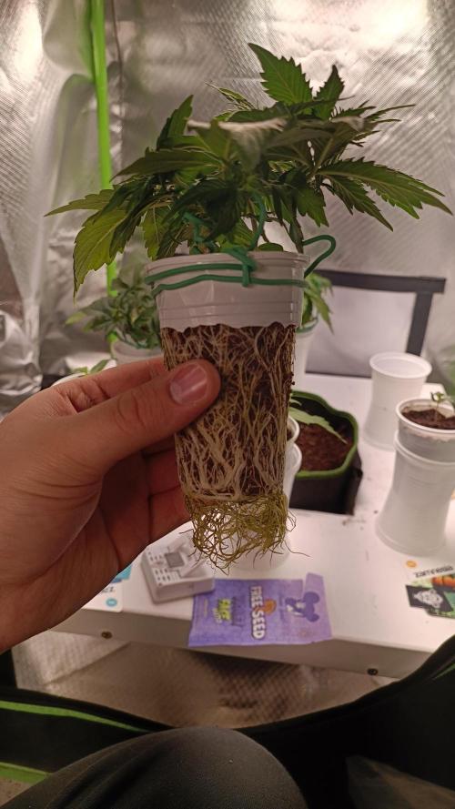 The seeds sprouted, only Tangerine Dream is taking tis time and isnt fully peaking out yet. I need a tray for that pot so i can water the coco until runoff and wet the whole thing so the plant can penetrate everywhere with her roots.