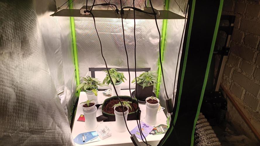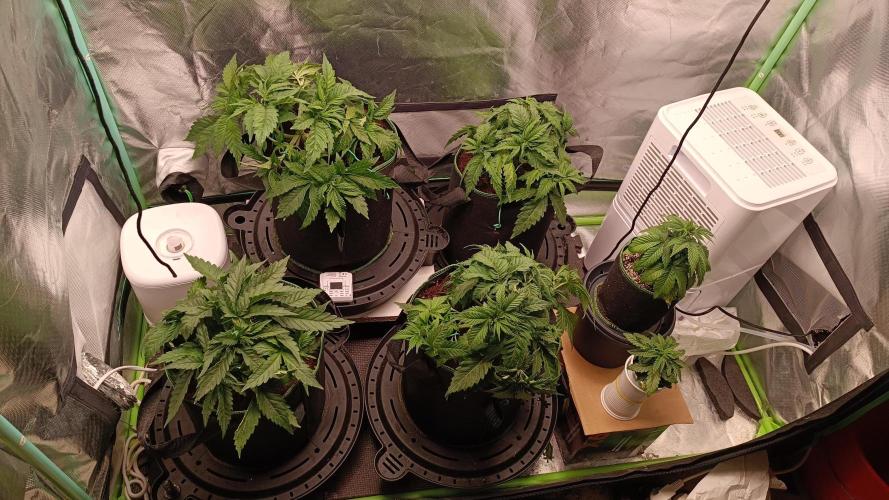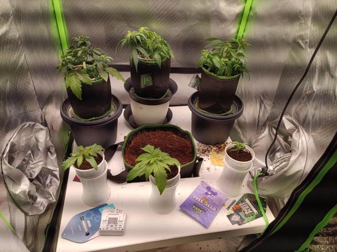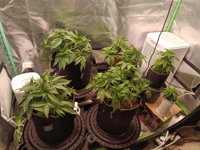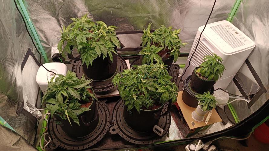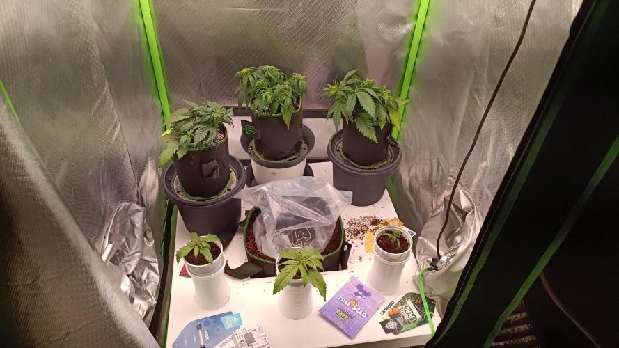 /// This grow features 5 big potted plants (8L) and 5x 0.2L cups as well as a Purple Haze bag seed cup (6th cup plant next to Gelato) ///