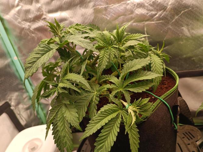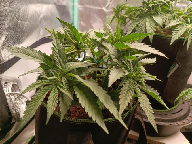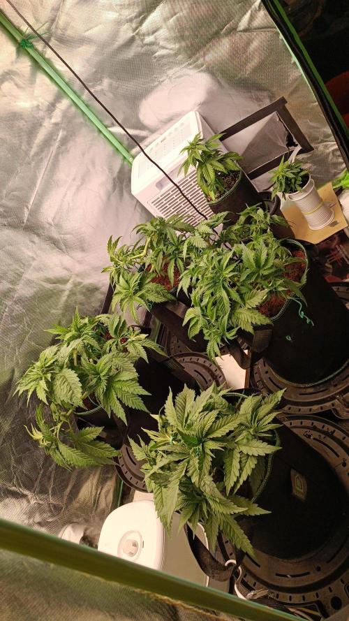 I do have to mention the auto tent shit thats going on tho: I know this wasnt well thought through, i just wanted to go for it and try a 2 tent setup. i have 2 60W lights from my frist grows and i put one of them inside for now. Since this was my DRYING tent from previous grows, it already had an exhaust system. I put the plants in, everythings fine, except for the humidity, which is like 40-50% in my basement and thus in the AC-less tent. I bought a cheapo humidifier but it seems to only run for a few hours before automatically shutting off and i cant change that, so imma have to buy another one so i lost money again.