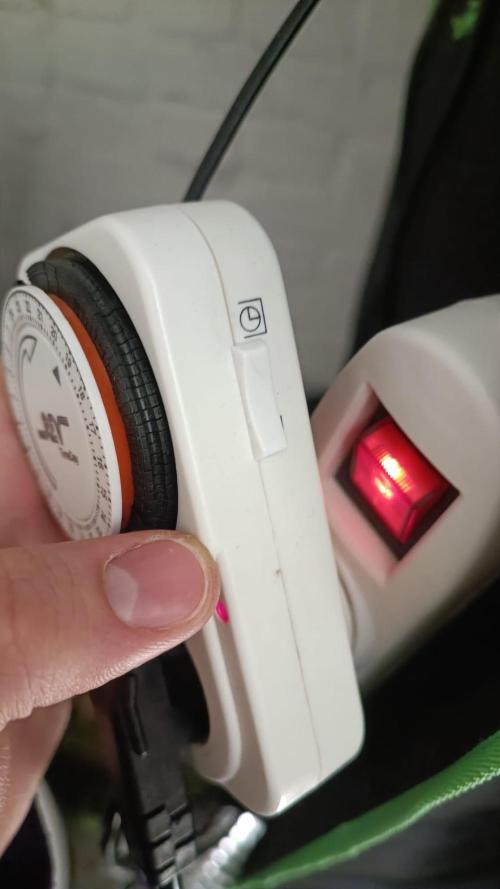 Another week another another problem. The grow light in my big tent (photo plants) has been on a 24h lights on schedule since- idk, could be since the beginning. Reason for all this being POOR PRODUCT DESIGN!!! The timer clock i was using has a switch which lets me use either the set timings for 'on' and 'off', or a continuous 'on'-setting. You can take a wild guess as to which setting does what from the pics of the timer.. (spoiler: whatever is being COVERED by the switch is what the setting is. Now. I know this isnt too crazy and does make sense, but being so accustomed to having visual indicators of a current setting, i mustve been tricked by the "displayed"/visible symbol.