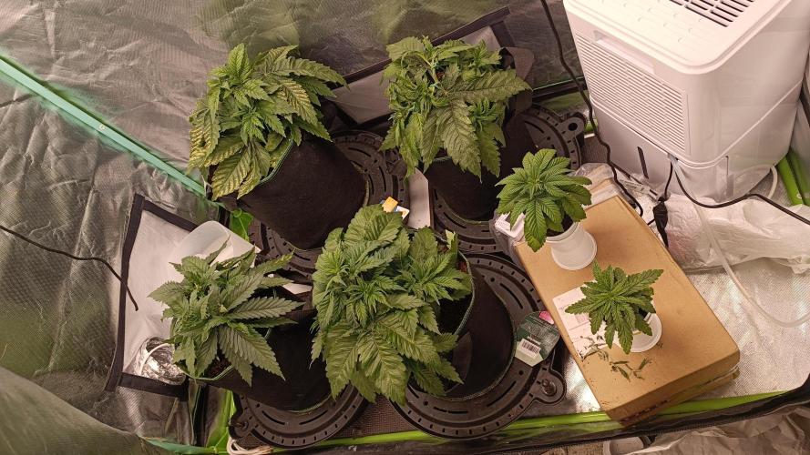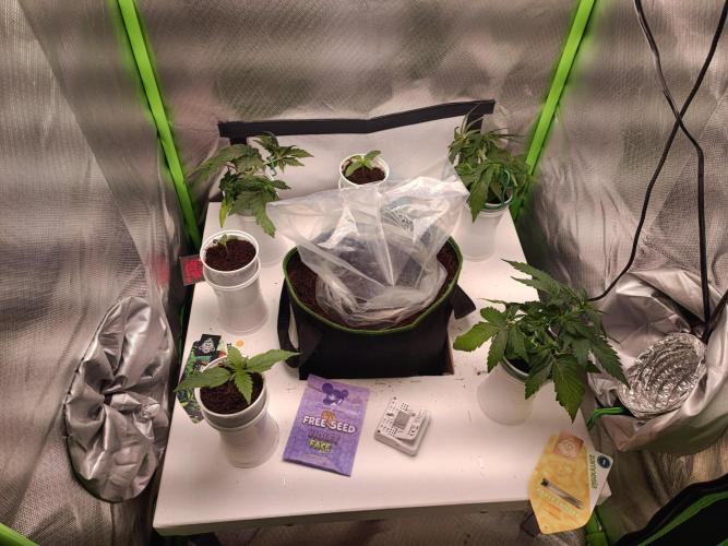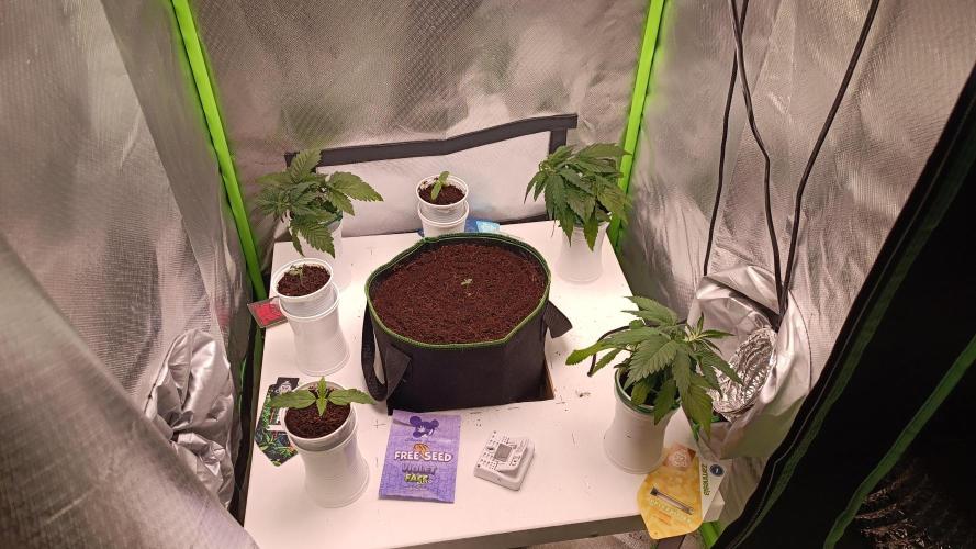 /// This grow features 5 big potted plants (8L) and 5x 0.2L cups as well as a Purple Haze bag seed cup (6th cup plant next to Gelato) ///