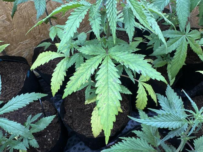 Nitrogen deficiency just gave it grow dots and a little bit of n fertilizer to assist