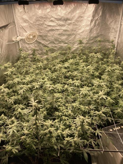 If I remember correctly this particular pheno isn’t a big stretcher, she just loves to branch out. I’ve put the net in to hopefully stop them all collapsing later down the line.