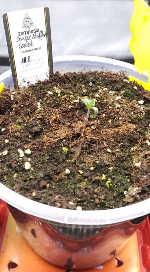 GrowerBaal As only one of the Double Stuffed Sorbet seeds germinated, i used the pot for this regular seed. Will not eliminate a possible male plant and try to harvest some pollen.