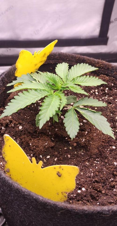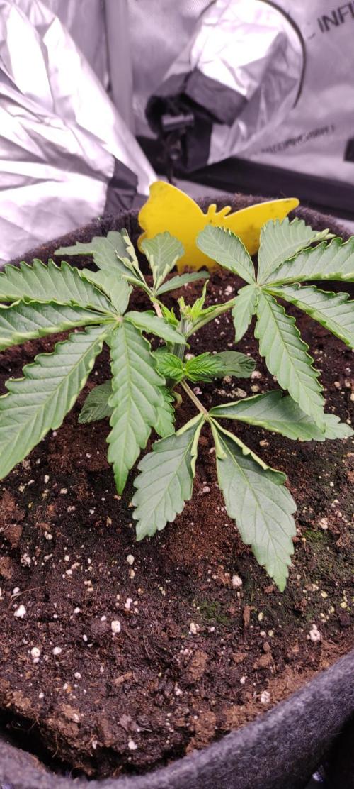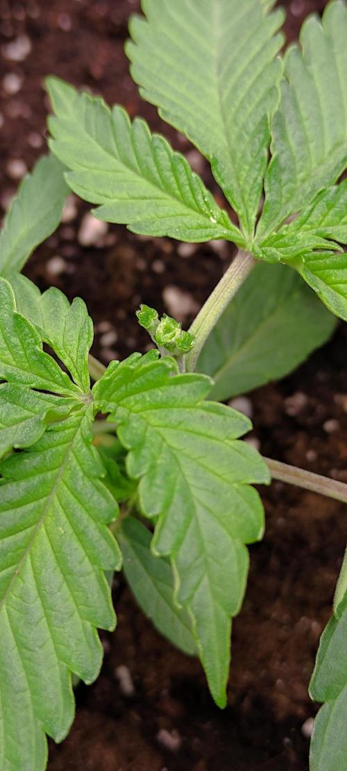 GrowerBaal As only one of the Double Stuffed Sorbet seeds germinated, i used the pot for this regular seed. Will not eliminate a possible male plant and try to harvest some pollen.
