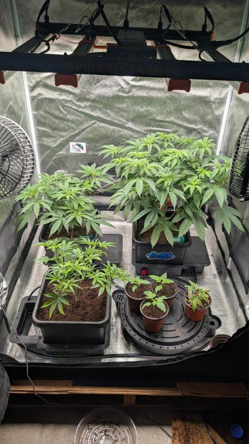 Madd_Rez Forgot to post last week. I ended up moving MMXX and OG Kush to a different tent - just made sense growth and timing wise. I have an apple glitter and some seedlings in here temporarily. Looking to flip next week.