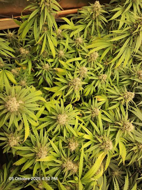 But hey — as we say in Italy, impara l'arte e metti da parte “learn the craft and keep it for next time.” So yeah, lesson learned for the next grow! Switched to smaller feeds (~2 L) and now they’re on a nice wet–dry rhythm every two days. The buds aren’t the huge frosty monsters you see in some diaries here, but they’re dense, aromatic, and looking solid in quality — I’ll take that as a win! I’ll keep feeding light this week and drop EC a bit. Every time I think about harvesting early, I have to slap my own hands and remind myself — patience is everything, right? Appreciate all the advice as always — growmies, you rock! ☘️🔥