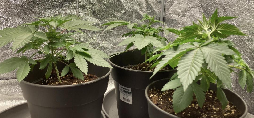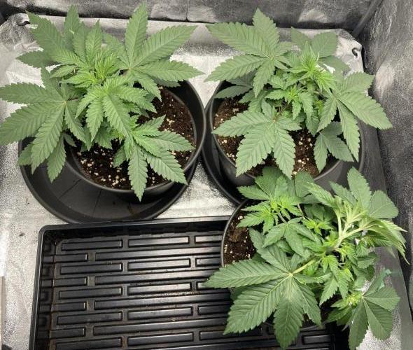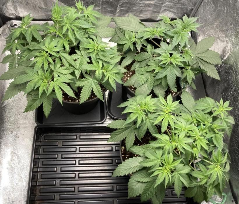 Flick Last week was a bit stressful for the little ones. I misinterpreted the high humidity in the nursery greenhouse and checked the soil too late, which resulted in a slight water shortage, but this was quickly and easily remedied. I should also have started fertilising earlier, as the light mix apparently only provides sufficient nutrients for a week. The day before yesterday, I repotted all three into larger 5-litre pots, as the roots were already sticking out of the bottom of the 0.5-litre pots. Today, I gave them another 500 ml of Water with 1ml Bio Grow per plant. I will add Acti Vera as soon as it is available. Overall, they are all developing nicely.