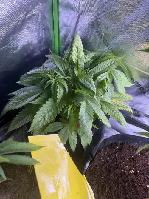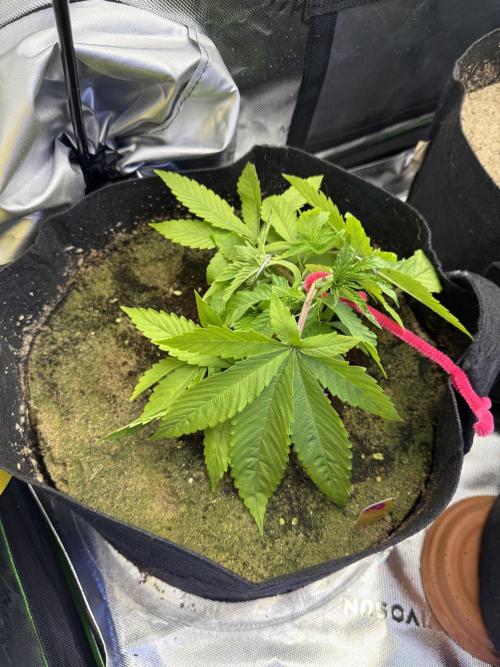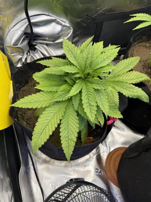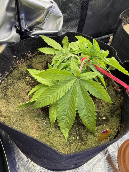 All up to date now. She has been transplanted into her final 5 gallon pot and moved into the large room tent. She will be with her sibs and growing tall in there. Will do a top in the next week and start training her along with the others.
