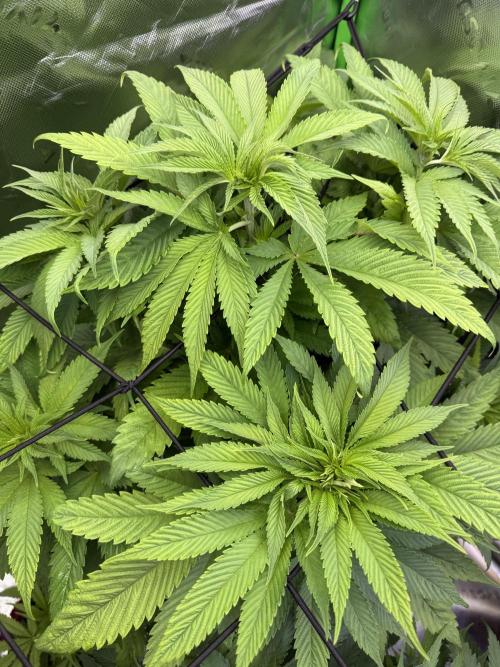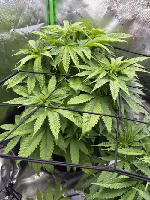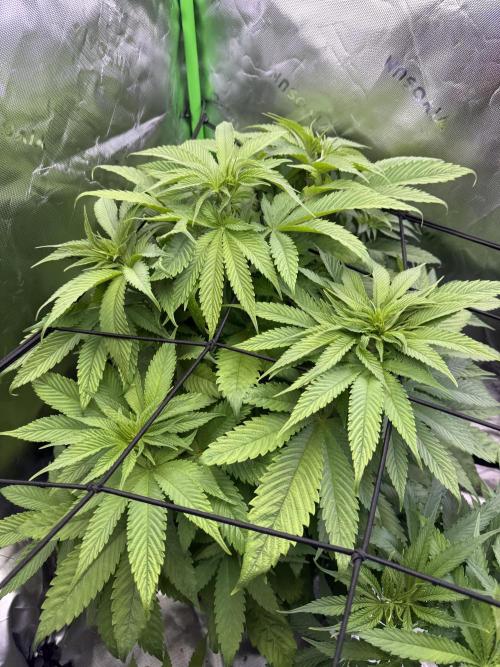 FarmerRasa Flipped to flower finally. Closes taken and rooted so I am comfortable moving on to flower. Screen is up to help the branches when they stretch for support.