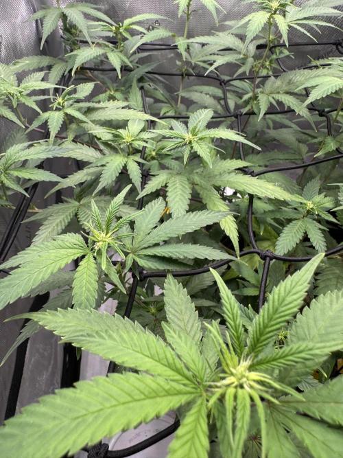 Michi0_36 Diary continues with week 2 of bloom, in a new environment. After talking her into the higher tent the plant looks healthy and the buds are starting to develop. I pretty much just let her grow the next week.