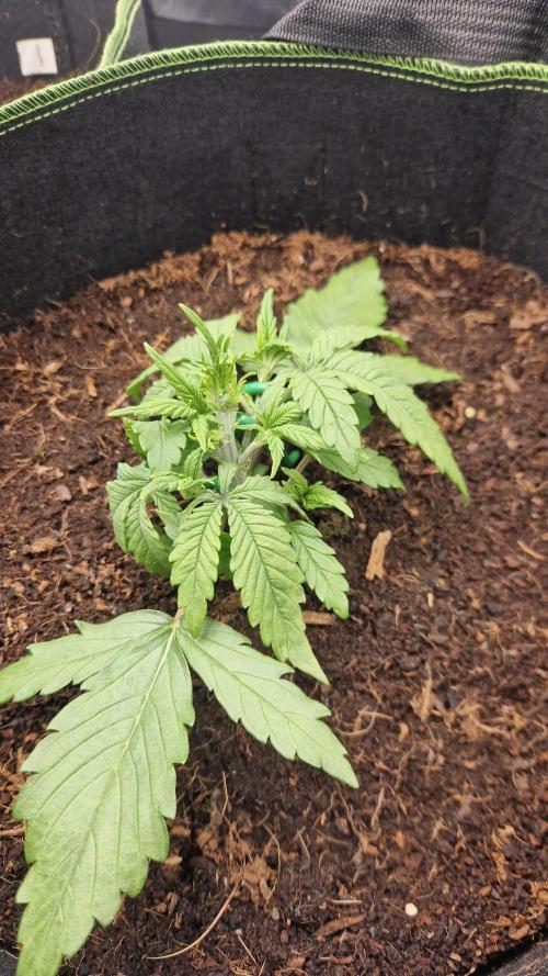 DanielGanja An Tag 15 angekommen, habe ich bei der Ztrawberriez strategisch Blätter entfernt, um ein gleichmäßigeres Blätterdach zu bekommen. Root Juice habe ich aus dem Düngeschema entfernt, dafür Fish Mix auf 0.7ml/L erhöht. Alle 2-3 Tage werden die Ladys gegossen. Bei den anderen Strains habe ich LST / HST vor, sobald sie ein paar Tage älter sind und ihr Stamm etwa 3,5 mm breit ist sowie bei der Ztrawberriez aktuell. Edit vom 25.09. Fish Mix wurde auf 1ml/L erhöht und sie trinken mittlerweile 2,5L in 2-3 Tagen. Die Oberfläche des Substrats an Tag 18 der Strawberry Gorilla war nach 2 1/2 Tagen Gießpause noch feucht dennoch war der Topf leicht aber die Blätter hingen bei ihr leicht runter. Ich vermute dass sich das Wasser unten abgesetzt hat und die Wurzeln kurz "erstickt" sind. Die Spitzen der Blattränder von der Pound Cake sind leicht gelb, vermutlich wegen EC oder sie verkraftet noch nicht soviel Dünger.