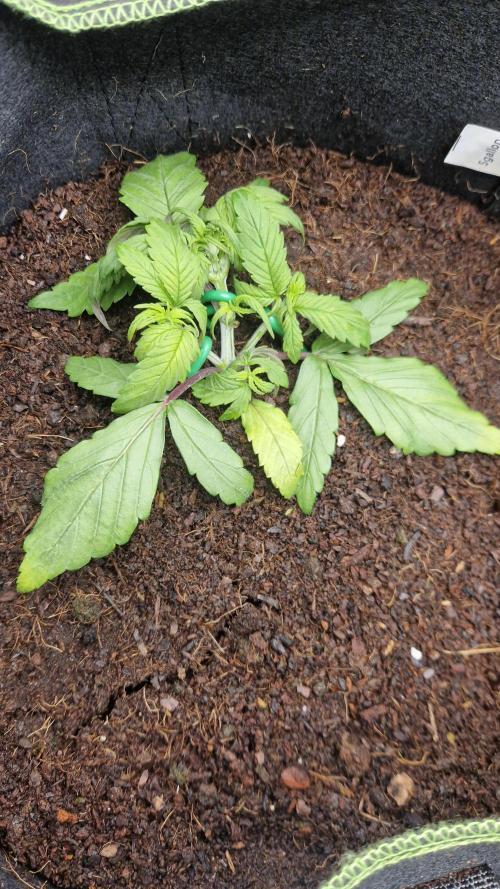 DanielGanja An Tag 21 angekommen wachsen die Pflanzen sehr gesund (bis auf den Stickstoffüberschuss bei der Strawberry Gorilla) und zeigen keine wesentlichen Defizite. Die Pflanzen wurden gestern trainiert, entlaubt. Edit vom 29.09. Die Ztrawberriez und die Strawberry Gorilla zeigen schon erste Pistillen, daher habe ich heute angefangen Bio Bloom (0,5ml/L) mitzugeben. Die Strawberry Gorilla habe ich mit etwa 5L pH angepasstem dechlorifiziertem Wasser gespült und anschließend mit 2,5L (halbe Menge vom Schema Fish Mix also 0,5ml/L) gegossen. Trotz ihres Stickstoffüberschusses habe ich sie trotzdem weiter trainiert, um ein ebenes Blätterdach zu erzielen. Außerdem hängt die LED mit 45 cm Abstand zu den Pflanzen jetzt auf 100 % gedimmt.