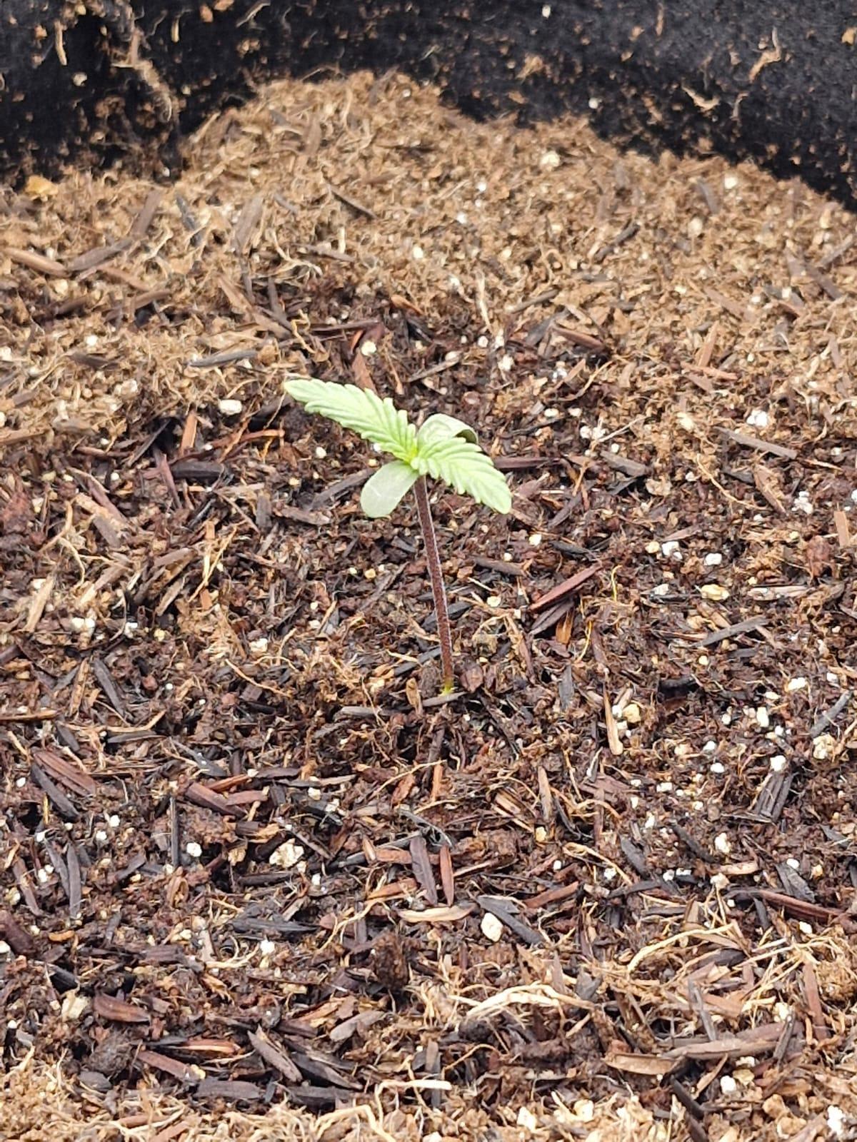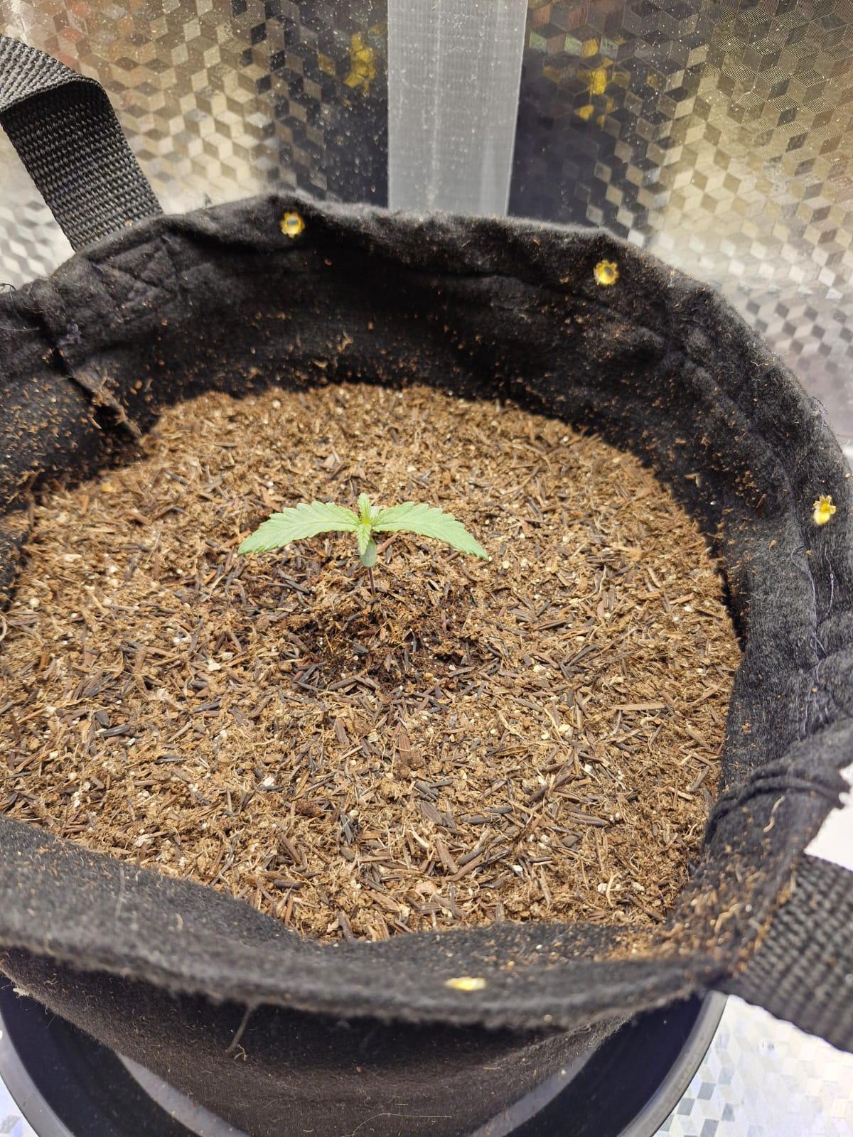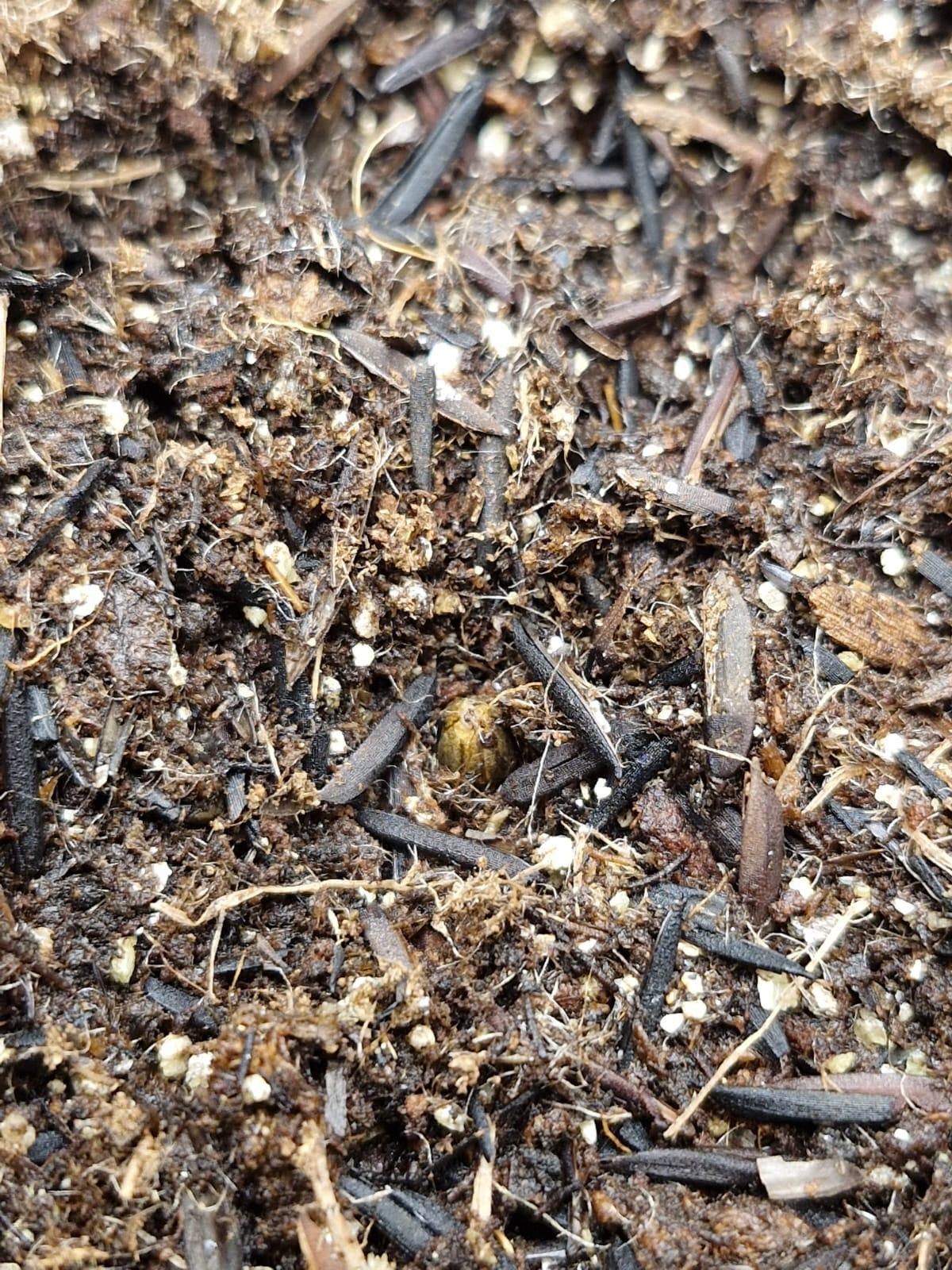 Seed didn't germinate entirely, but the first part was sarting to get out of the shell. Today I decided to plant it. using only California Soil, will further feed it with REMO Nutrients.