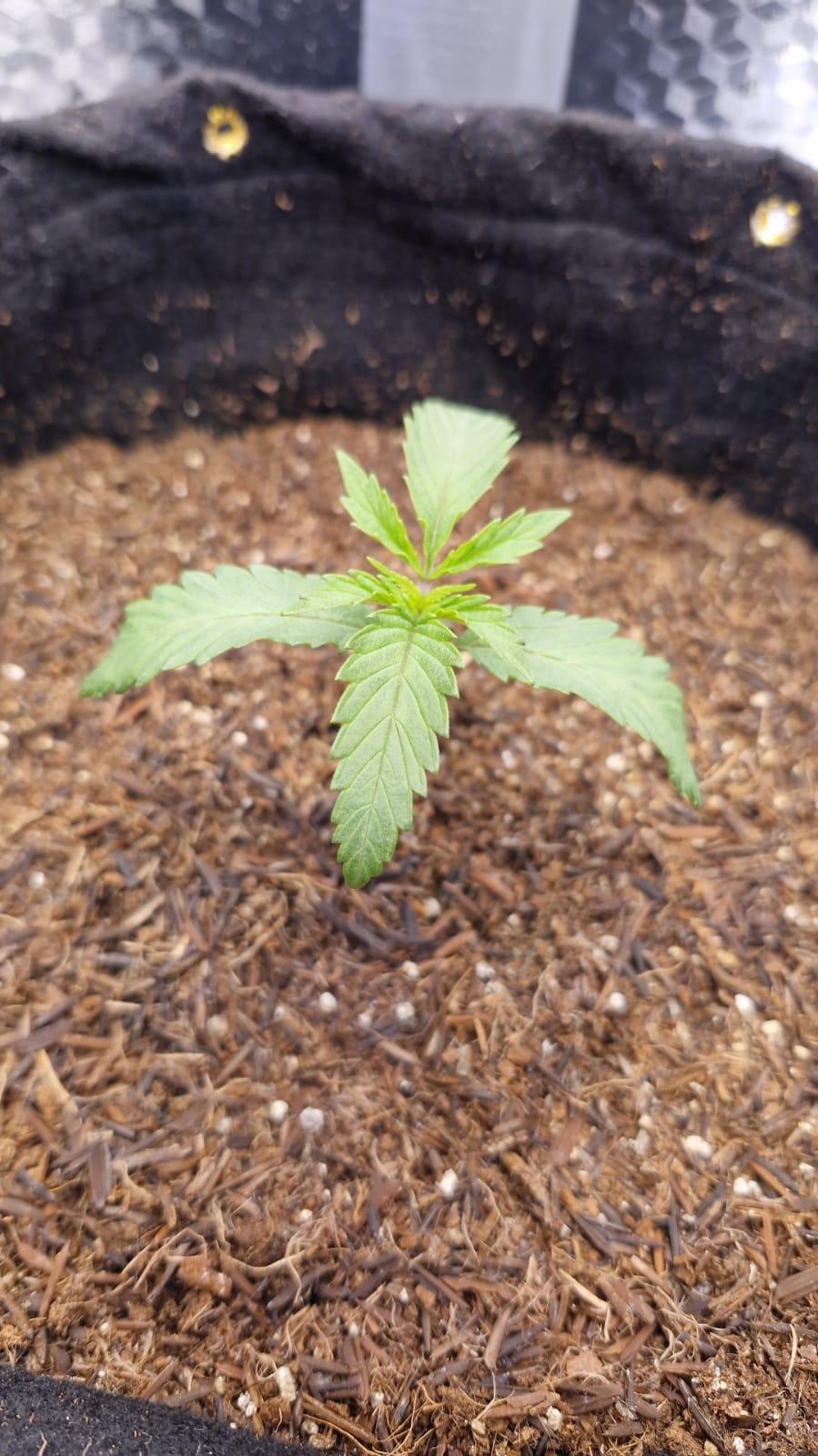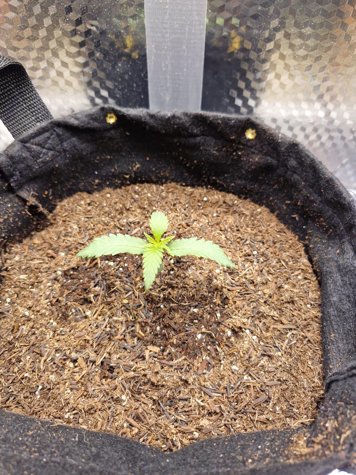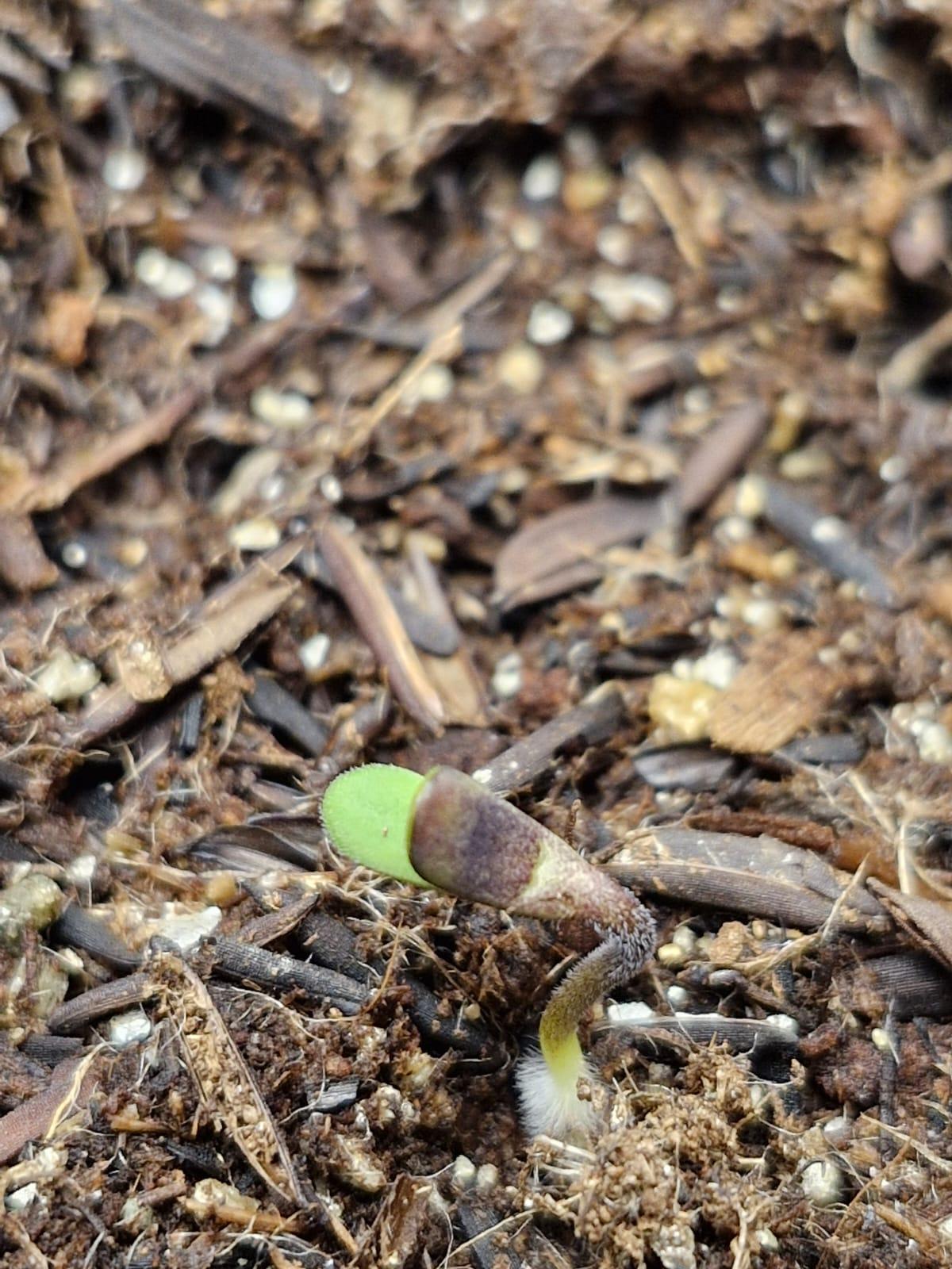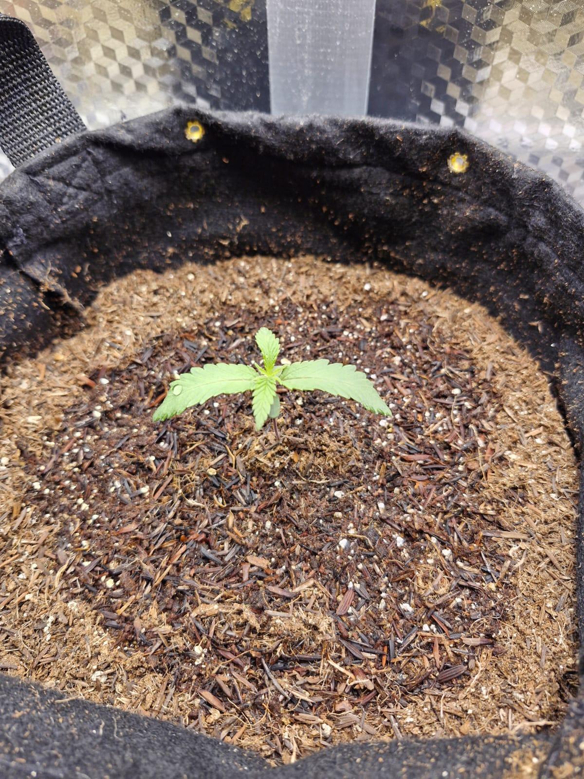 Seed didn't germinate entirely, but the first part was sarting to get out of the shell. Today I decided to plant it. using only California Soil, will further feed it with REMO Nutrients.