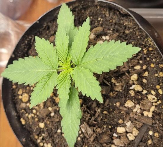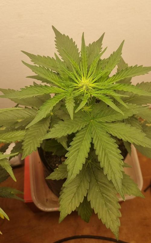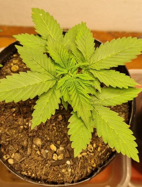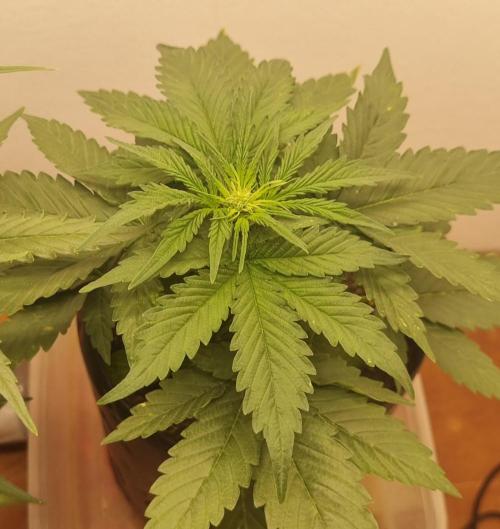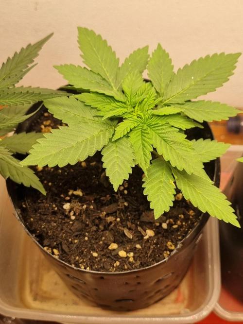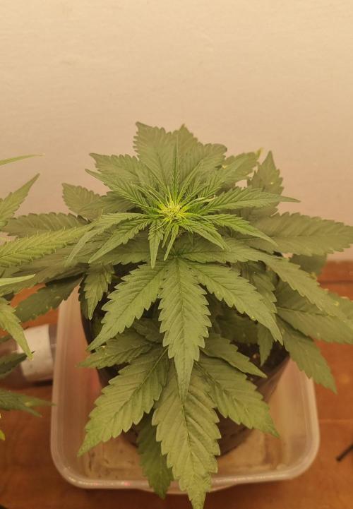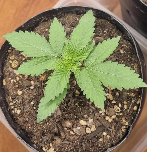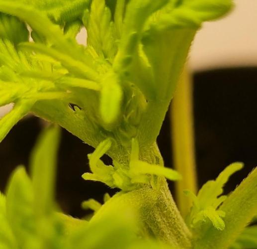 Pechu420 It's been cold around here lately, which is a bit bad for her development, but she's doing well. She showed her first pistils at 17 days old.