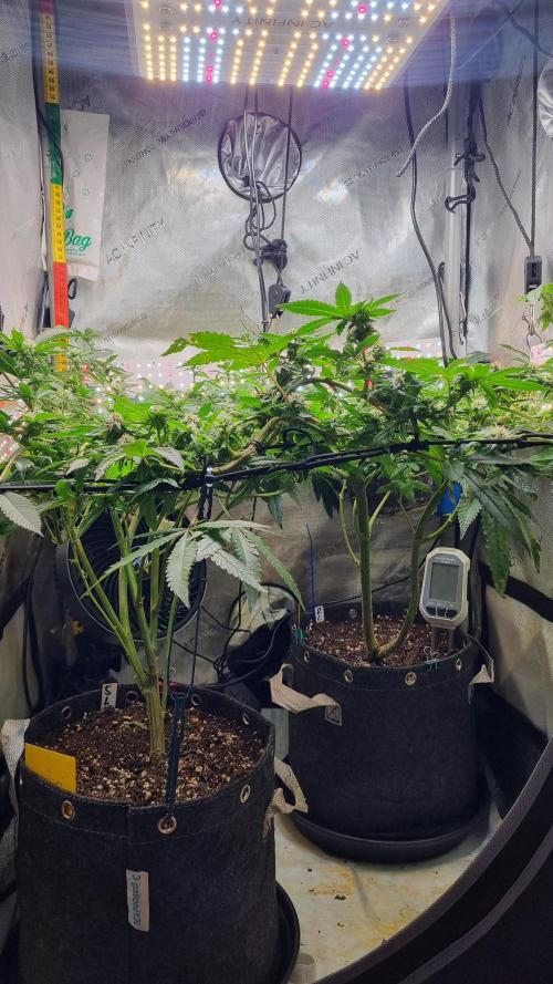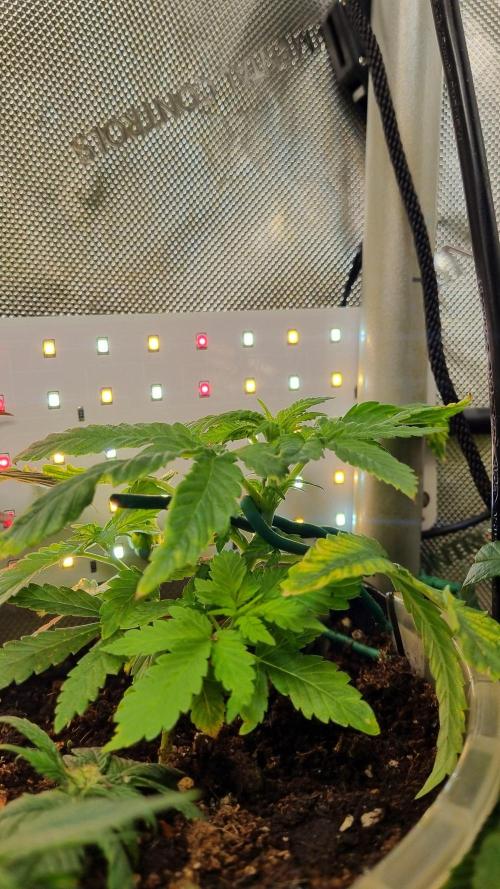 Black domina is fairly slow, she will be just a test. my plan is to wait for the next leaf pair, top her and send her into flowering too. i would like to put her up somewher on the side of the the tent, elevated.