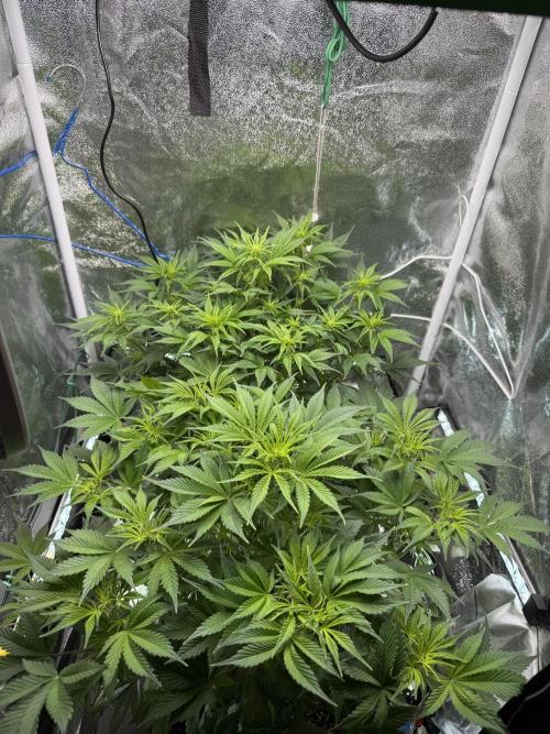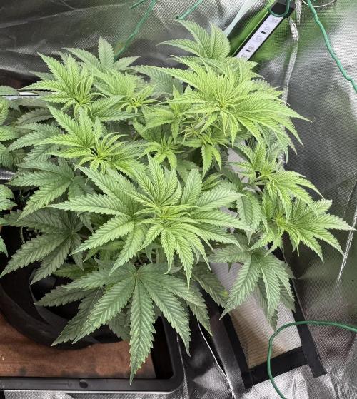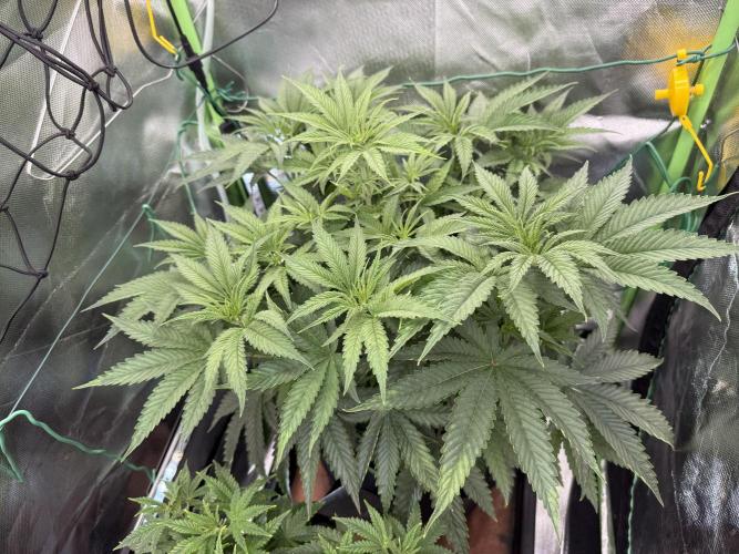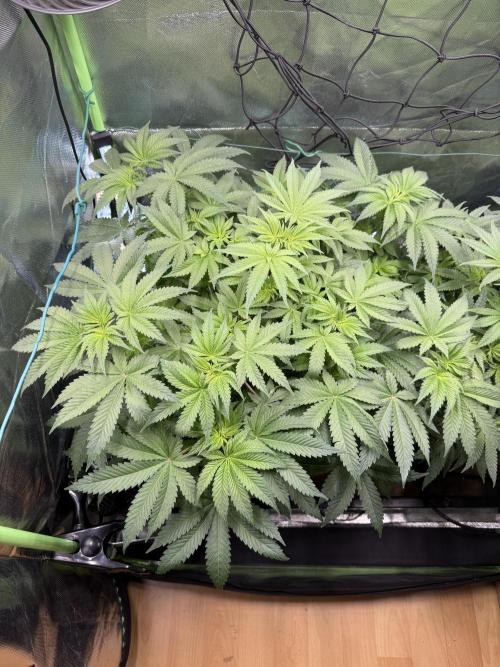 The brainkiller haze getting more and more bushy, she will get a defoliation tomorrow to make her a bit more airy and also do some LST to give the branches at least some guidance for the stretch