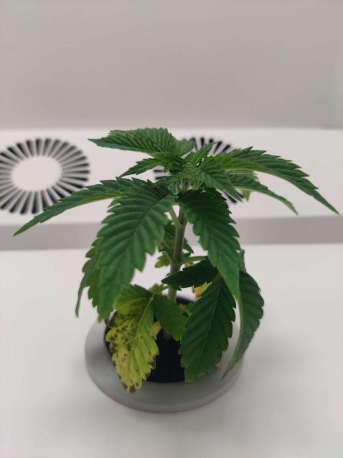 Day 6: Noticeable yellowing of lower leaves, i think the hydrogen peroxide was a bit of an overdose but no sign of root rot anywhere.