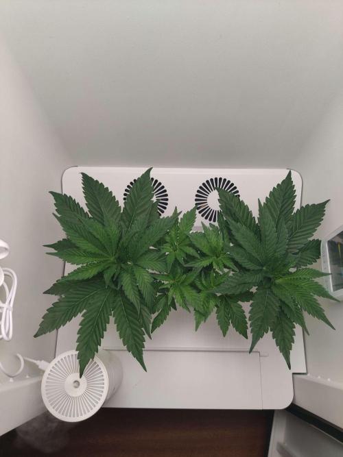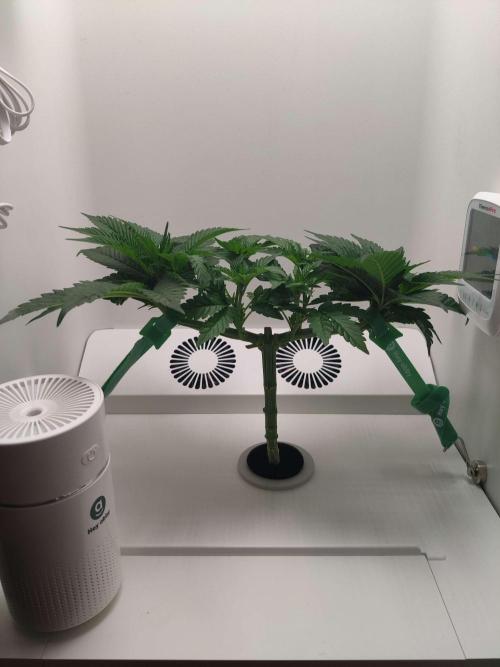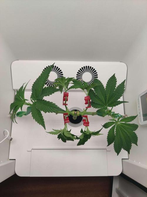 dabaglob Fresh reservoir change! CropSalt: Veg A - 11.5g CropSalt: Veg B - 7.75g CropSalt: RunClean - 5ml Southern AG: Garden Friendly Fungicide (99% Bacillus Amyloliquefaciens strain D747) - 5ml Reverse Osmosis Water: 2.5gal Day 1: The bleach has been too harsh or I'm adding too frequently. I feel like it's stunting root growth so I decided to switch over to a stronger version of the Hydrogaurd microbes. hoping I can get the roots a bit fatter this week before I top Day 4: Gorgeous white roots are starting to emerge! Things are looking up, probably will top before the end of the week. Hoping to get a clone or two out of it before flower flip