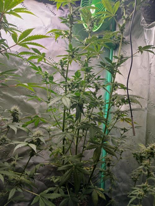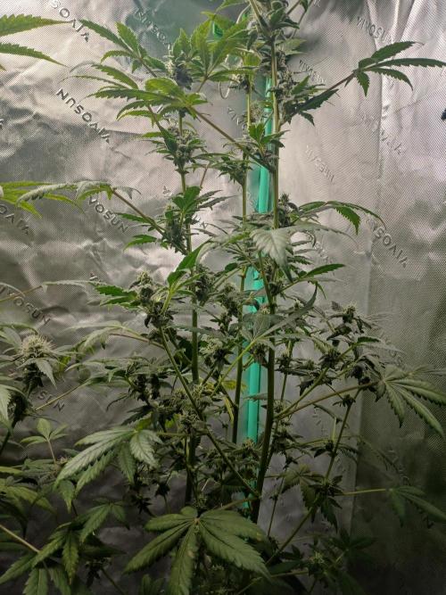 BlunthumbMD Doing very well, starting flower. Still stout, hoping to keep her squarely. The training has definitely gave her girth in her stalk, and the grow goes on baby!