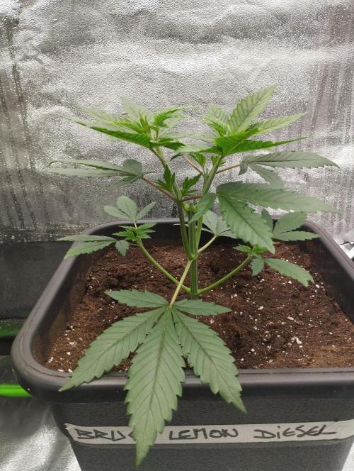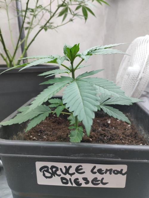 BudBrewerz I've planted the Bruce Lemon Diesel out in a 7l pot filled with Plagron Lightmix, since it's pre-filled with nutrients for a while , I haven't given her any other nutrients yet. For now she is just getting rain water.She seems to have started off very healthy imo.