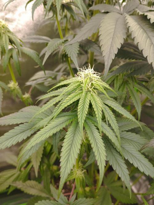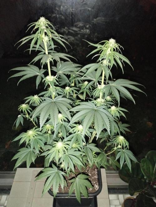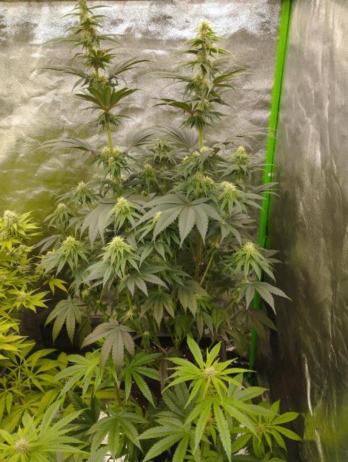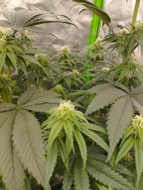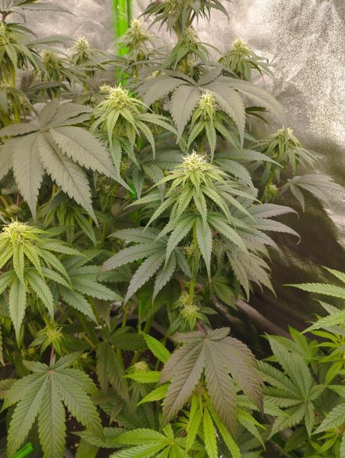 BudBrewerz Bruce has grown a fair bit these last two weeks , luckily she also started packing up some bud. She's looking very healthy and her flowers are already looking nice , so Im really looking forward to seeing her bloom.