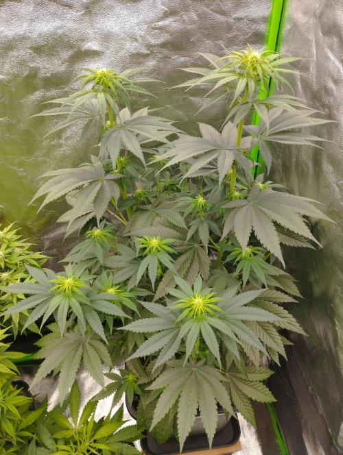 BudBrewerz So ... Direct after week 4 ,I had put Bruce to 12/12 flower-mode and started giving her blooming nutrients. She stretched out a while lot but seems to be doing great, she's starting to form her buds ... So, fun weeks are ahead of us 💪💪💪