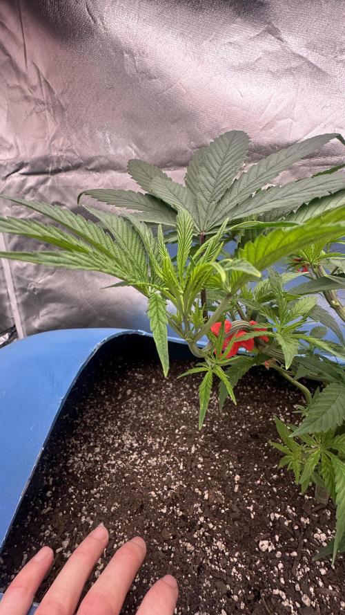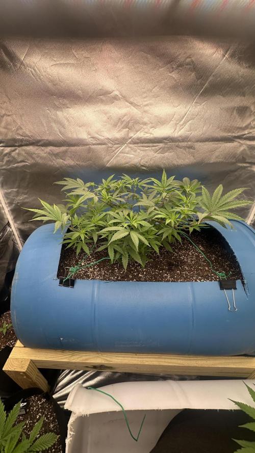 DabMansGenetics PPD is doing awesome. Very strong plant. I use plant clips to bend the branches 90 degrees down and in a couple hours the branch is up towards the light again. I’ve FIMed and pinched 10 tops off a few days ago so it should double in tops soon. I’m trying to keep it at about 600 PPFD from my aglex 1000 watt 10 bar. Also will keep training to stay lower and fill up about half the tent before I put into flower. Humboldt dream and blueberry muffin will fill up the remainder of the tent. This is definitely a strong growing plant and I hope I get some beautiful purple buds from it. Give me a follow if you like any of my diaries. I’ll follow you back.