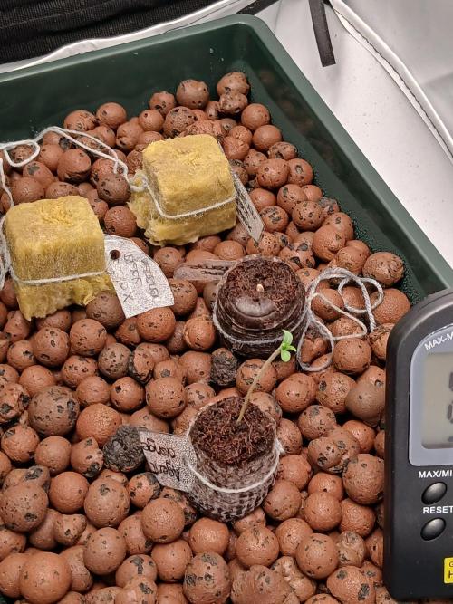 14.09.2025 One seedling was ready yesterday so I transplanted both into a jiffy. Hopefully the other one will pop, too!