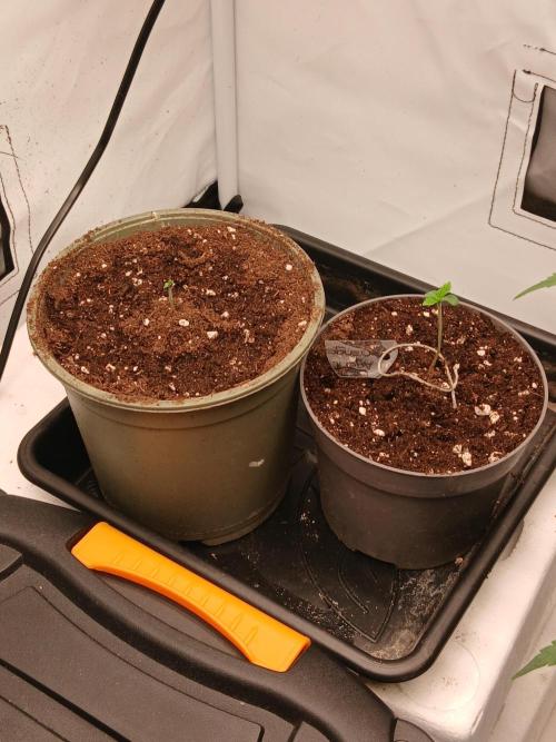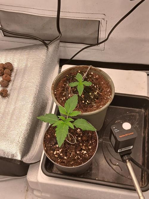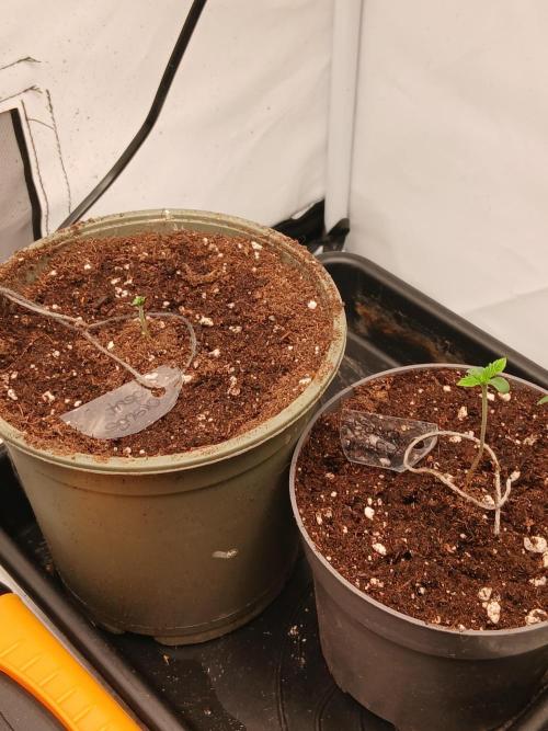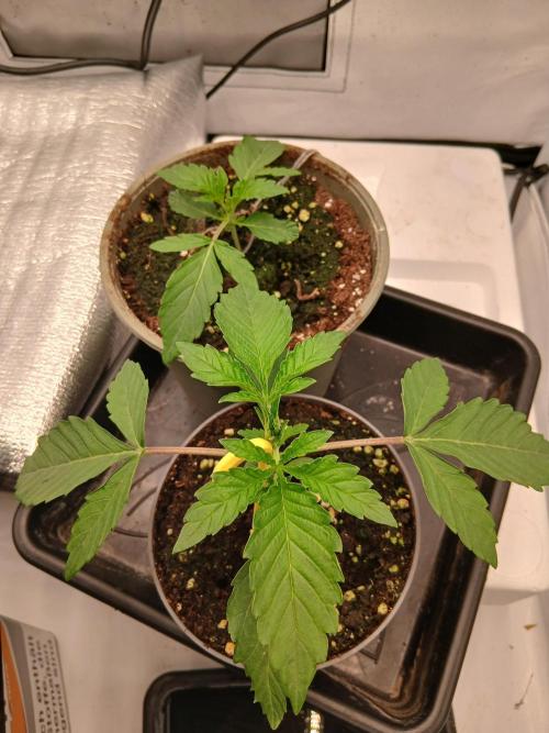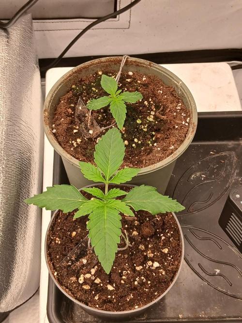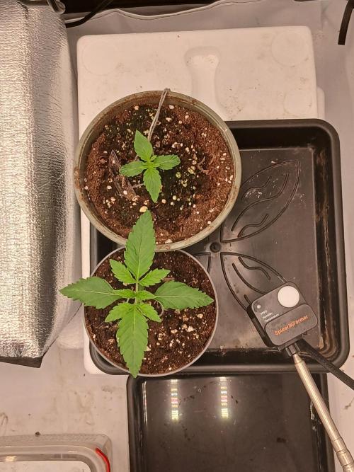 BettyFlores 25.09.2025 Here we grow again and I suspect that the tall Agent Orange will be male. These two received a bit too much light but after recognizing and adjusting now they do look quiet happy. Any bets if female or male are welcome 😃