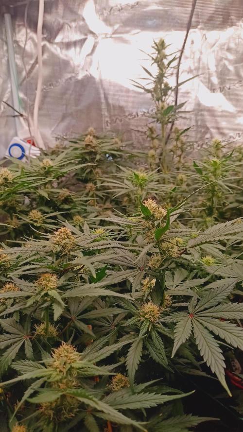 Foxyred The grow has been problem free so far. Frostbangers are getting a little bigger flowers now. Its smells like some melon and lime to me and its very fresh.