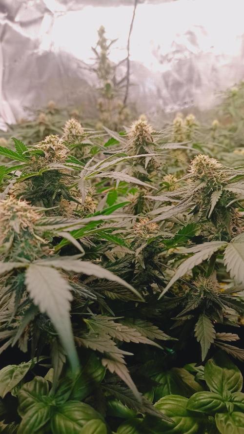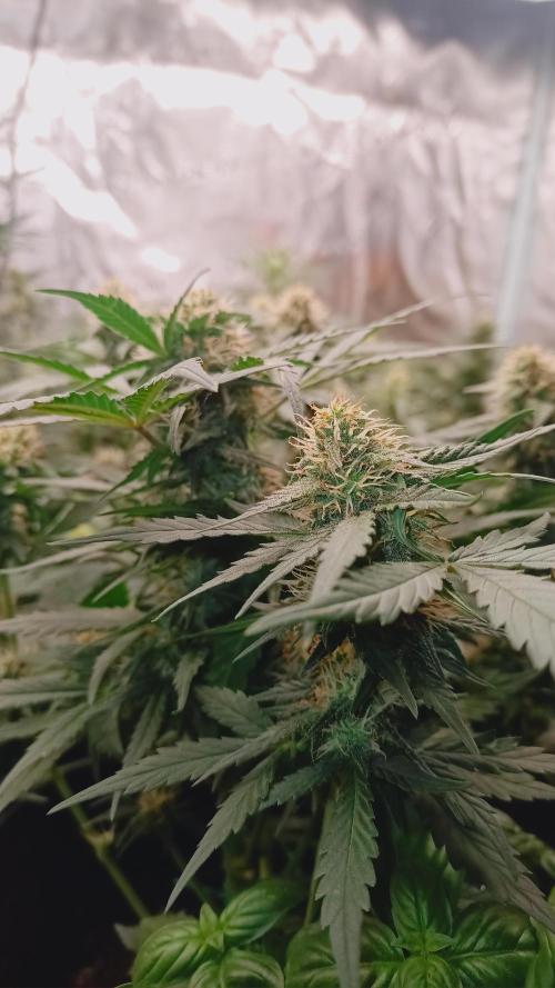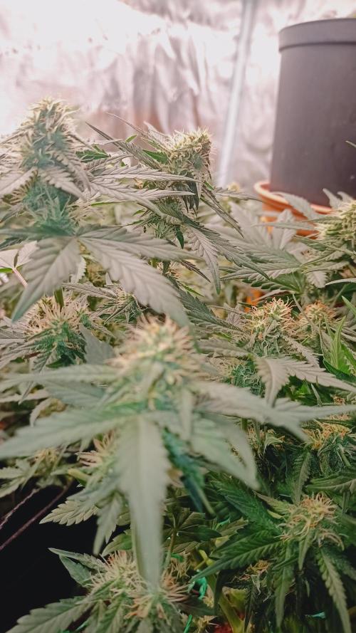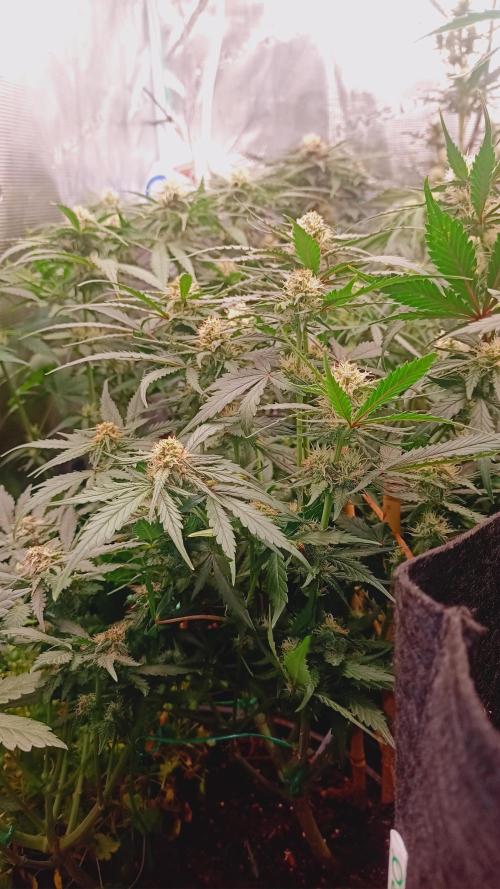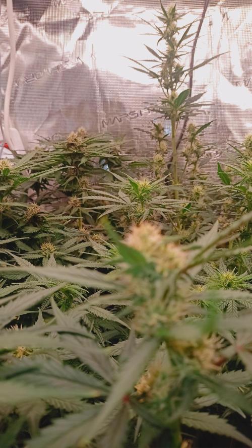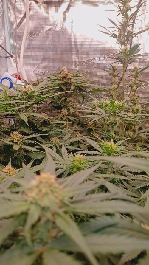 Foxyred On monday it will be 4 weeks for the young ladies and they are starting to flower. They are short and bushy lets see how mutch they strech. I will do a topdressing soon using kelpmeal batguano rockdust and a little of epsom salt. After that i will only water them for about 3 weeks. I will add a Mars Hydro ts 1000 150 watts light next week too since i have alot of plants in the tent . So far so good. all the ladies are happy and loves life. 😻🌱🌱🌱 Happy growing to you 💚