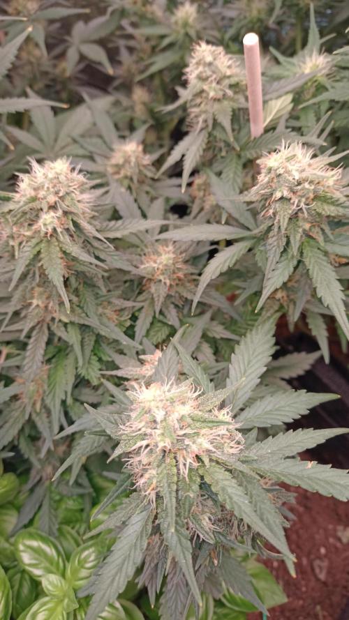 Foxyred On monday it will be 4 weeks for the young ladies and they are starting to flower. They are short and bushy lets see how mutch they strech. I will do a topdressing soon using kelpmeal batguano rockdust and a little of epsom salt. After that i will only water them for about 3 weeks. I will add a Mars Hydro ts 1000 150 watts light next week too since i have alot of plants in the tent . So far so good. all the ladies are happy and loves life. 😻🌱🌱🌱 Happy growing to you 💚