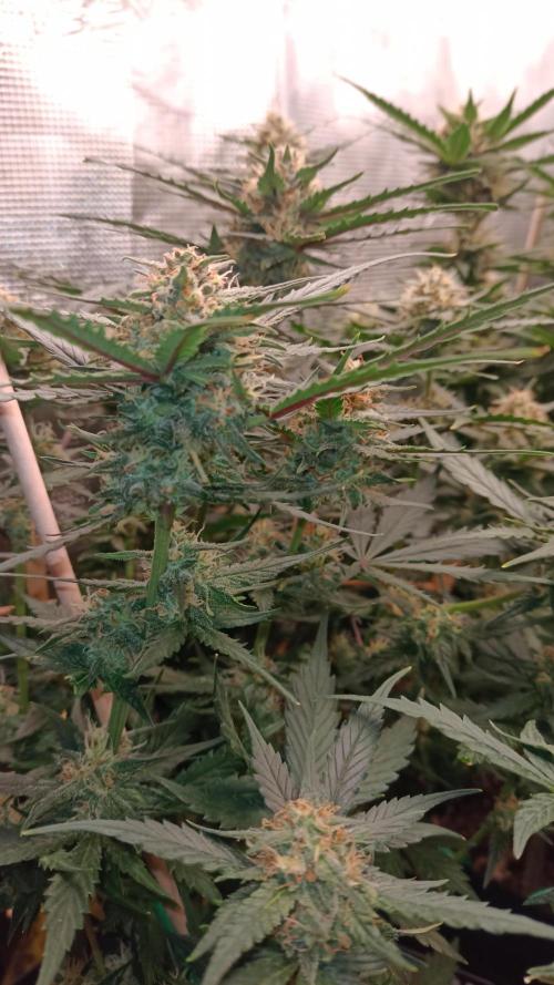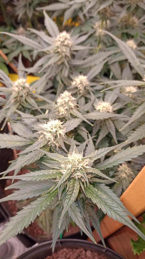 Foxyred The grow has been problem free so far. Frostbangers are getting a little bigger flowers now. Its smells like some melon and lime to me and its very fresh.