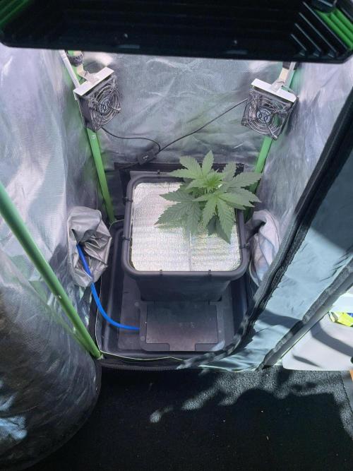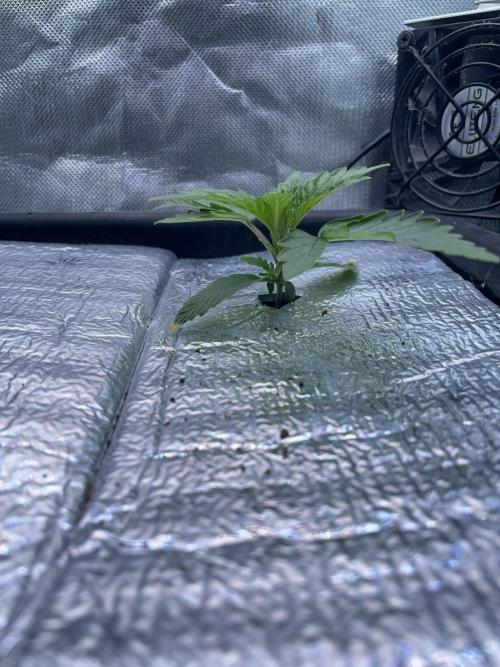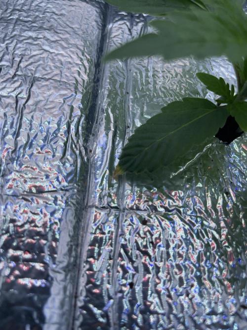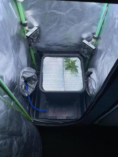 After a couple of days, I added a humidifier to the tent, removed the humidity dome, and added a reflective mulch layer.