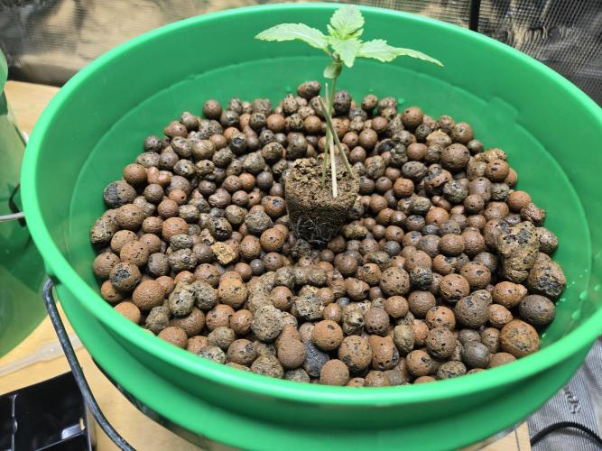 day 8 9/20 I put the plants in the pots with rocks. Just RO water from the reservoir. They definitely need nutrients soon.