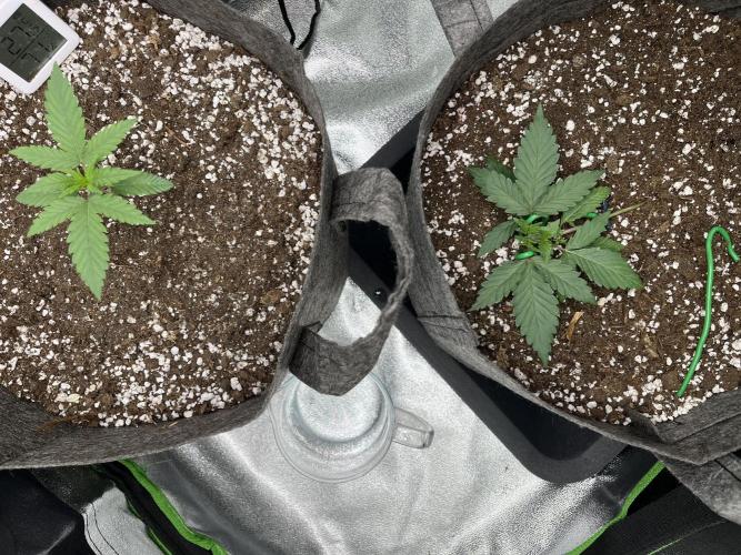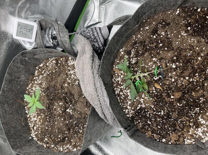 GoblinGrower So I'm now in the middle of the 2nd week of the vegetative phase, they have had the new light for 3-4 days now and i can definitaly see a difference, they're growing pretty fast. For now I only used CalMag once to give some missing minerals from the demineralised water, maybe in 7 days I'll start with some BioGrow, for now i think the worm casting are providing enough Nitrogen for the growth. I'm still watering with 100ml on the dwarf and 300 on the gorilla evety 3 days when the soil is dry. ---------- At the end of the week I topped the Gorilla and did some LST.