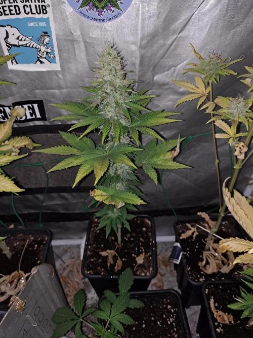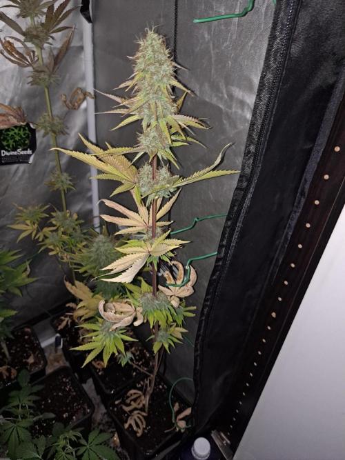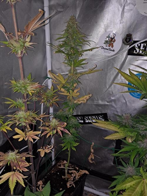 Franco123 hi, the plants are fine for now apart from a few yellow leaves, no problems, a bleak muffin x tangy plant dominates and has a purple phenotype already from the first flowers and I like it, already in the vegetative week I liked the structure and I took a cutting which is now growing in a small box and is already being sprayed with colloidal silver to invert it and make pollen for feminized seeds which in this case I will use on itself