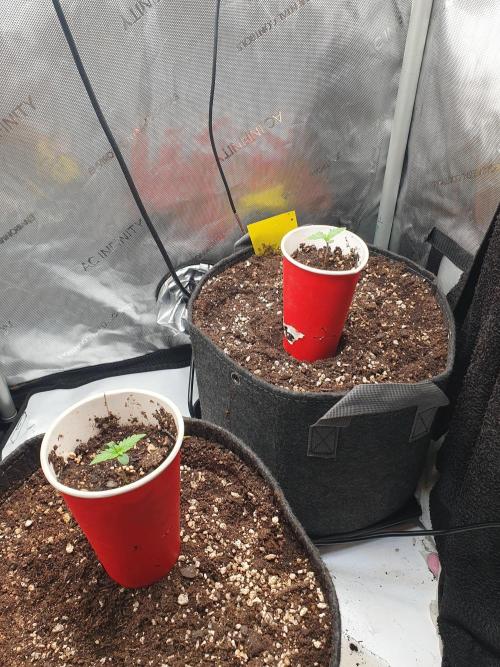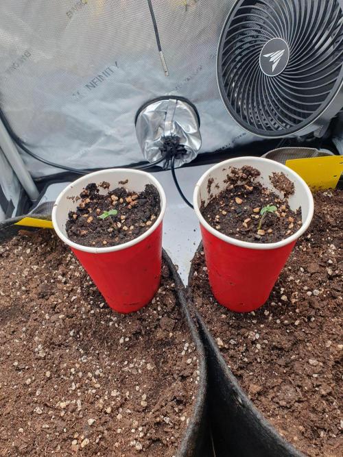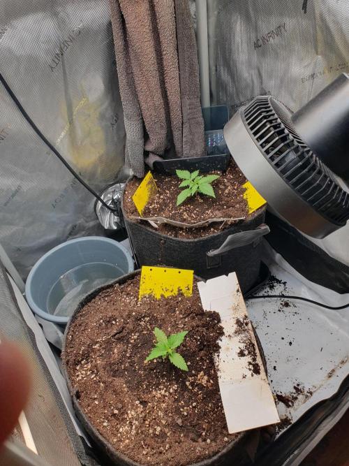 I transplanted them into their final 19-liter pots. I noticed a few fungus gnats in the soil.