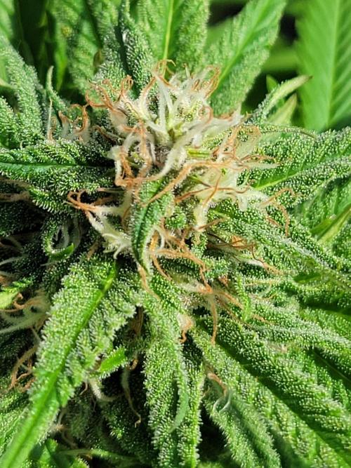 Kilo_d We're almost to the end. Its Saturday and monday will be week 8. Trichomes are still filling up slowly. The buds have hardened and swelled a little bit. After touching a bud your fingers smell like a sweet skunky bubble gum. I can't wait to try her out.