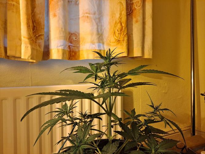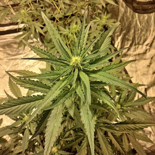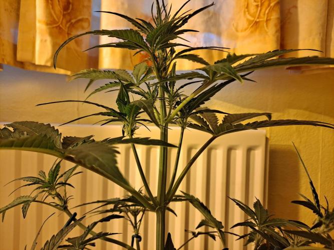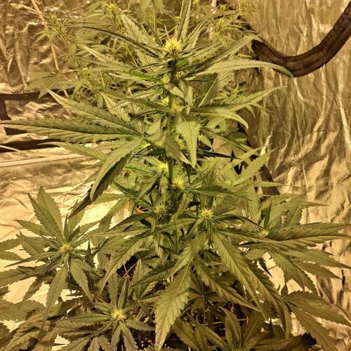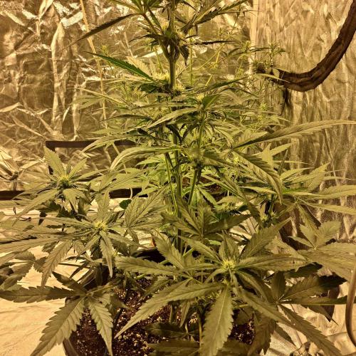 and she has stretched a lot in last week. I've begun LST, tieing her branches down to expose to more light and removing some of the lower growth. She's starting to drink a lot more now and gave her a little feed every other watering. Hopefully it won't stretch much more and go into full flower production 🤞.I swapped bulb to a duel spectrum hps, but I'm waiting for a new duel spectrum bulb to arrive so I no it's on point 👌 ( current one has done a few grows and as I've not grown for a few years due to ill health, don't know it's true output ) Looking forward to the next few weeks as she's starting to smell fantastic as buds begin to form 😋👍. Until next week