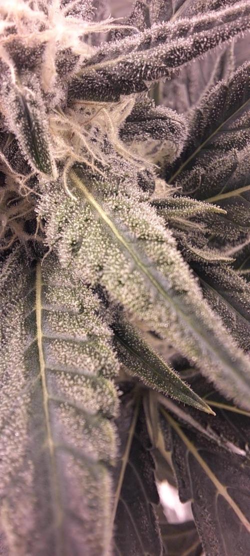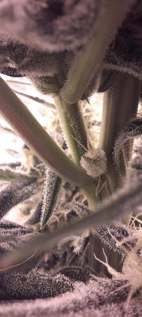 She's frosting up nicely, with trichomes everywhere - even on the stalks 👍