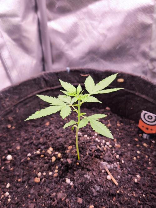 Here’s our Lemon Haze! 🍋 She had a bit of a rough start during germination due to the high temps, but let’s see how she develops from here. I thought about replacing her, but to avoid falling too far behind compared to the others in the tent, I decided to keep her. For now, it’s just waterings with BioRhizotonic by Canna, nothing else. 🧡