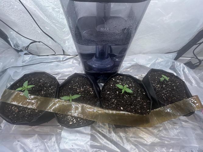 Moved to 1 Gal pots and started feeding. 1 Dreadnought OG 4 Maui Wowie