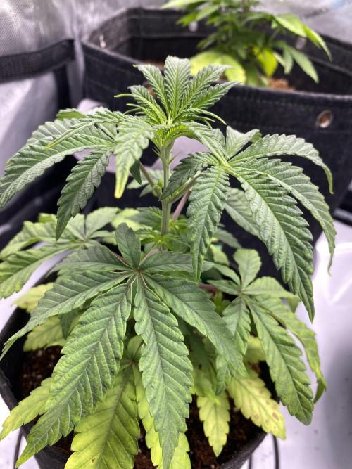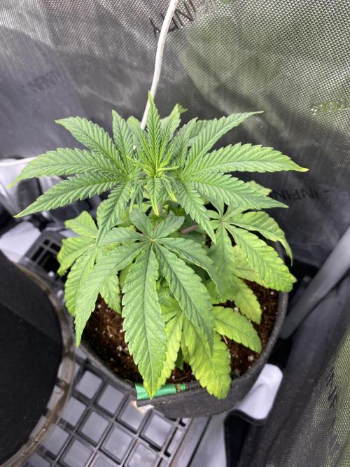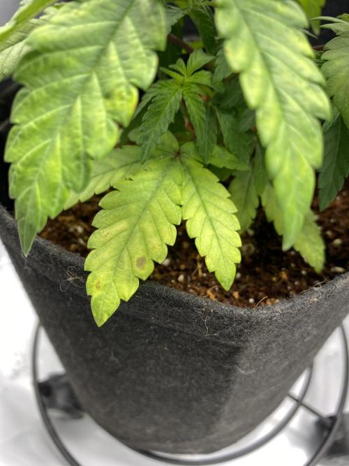 LAShugars Transplanted into 1 gallon transplant bag. She was much more root bound than I expected.Her lower leaves are for sure telling me something. Going to baby her for the next couple days and I’m she’ll be fine